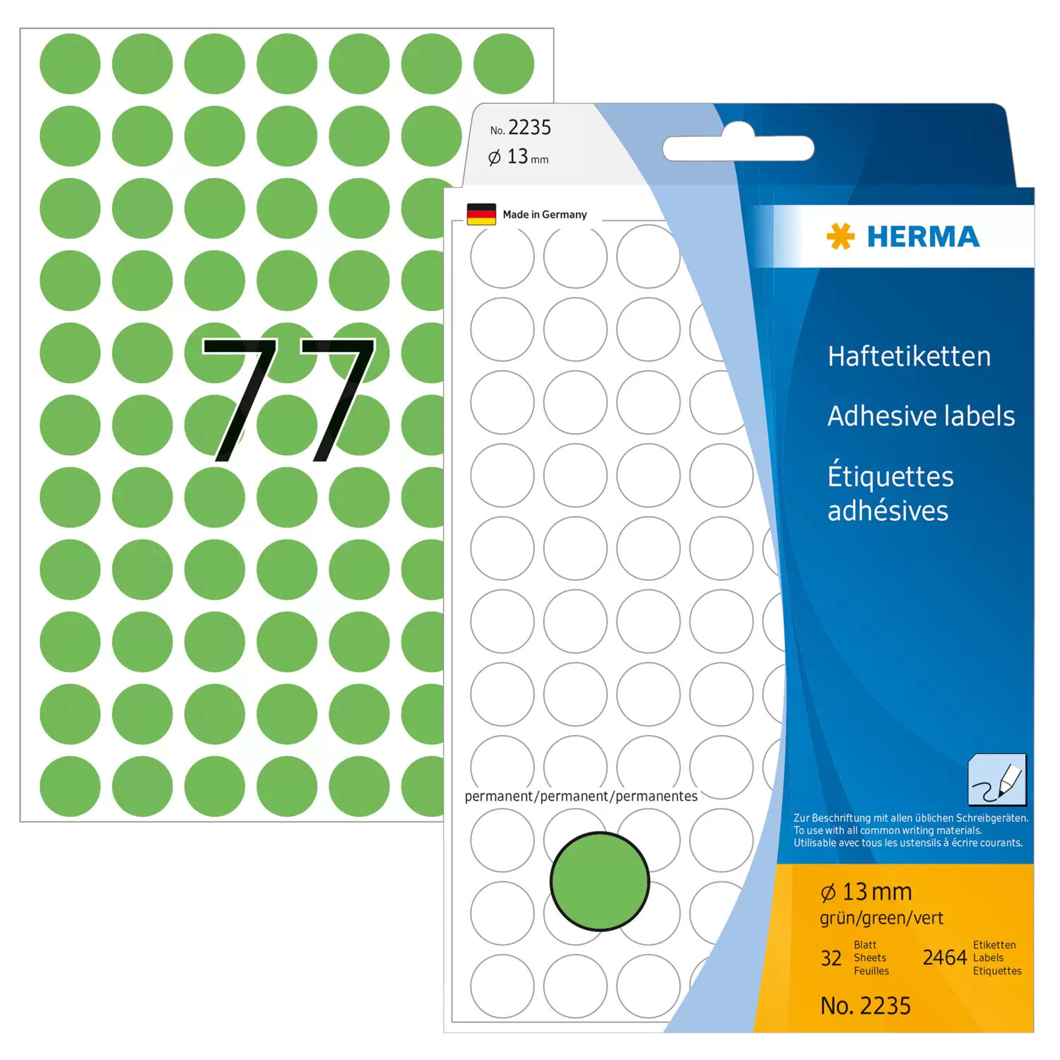 Multipurpose-etiketten, Ø 13 mm, rond groen, permanent hechtend, om met de hand te beschrijven