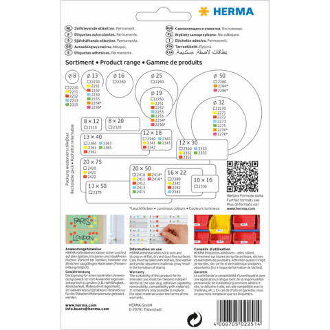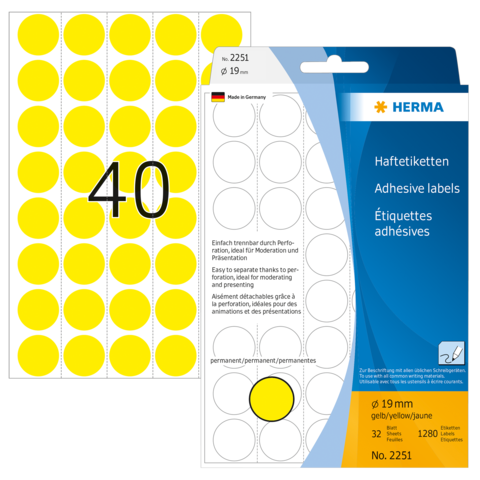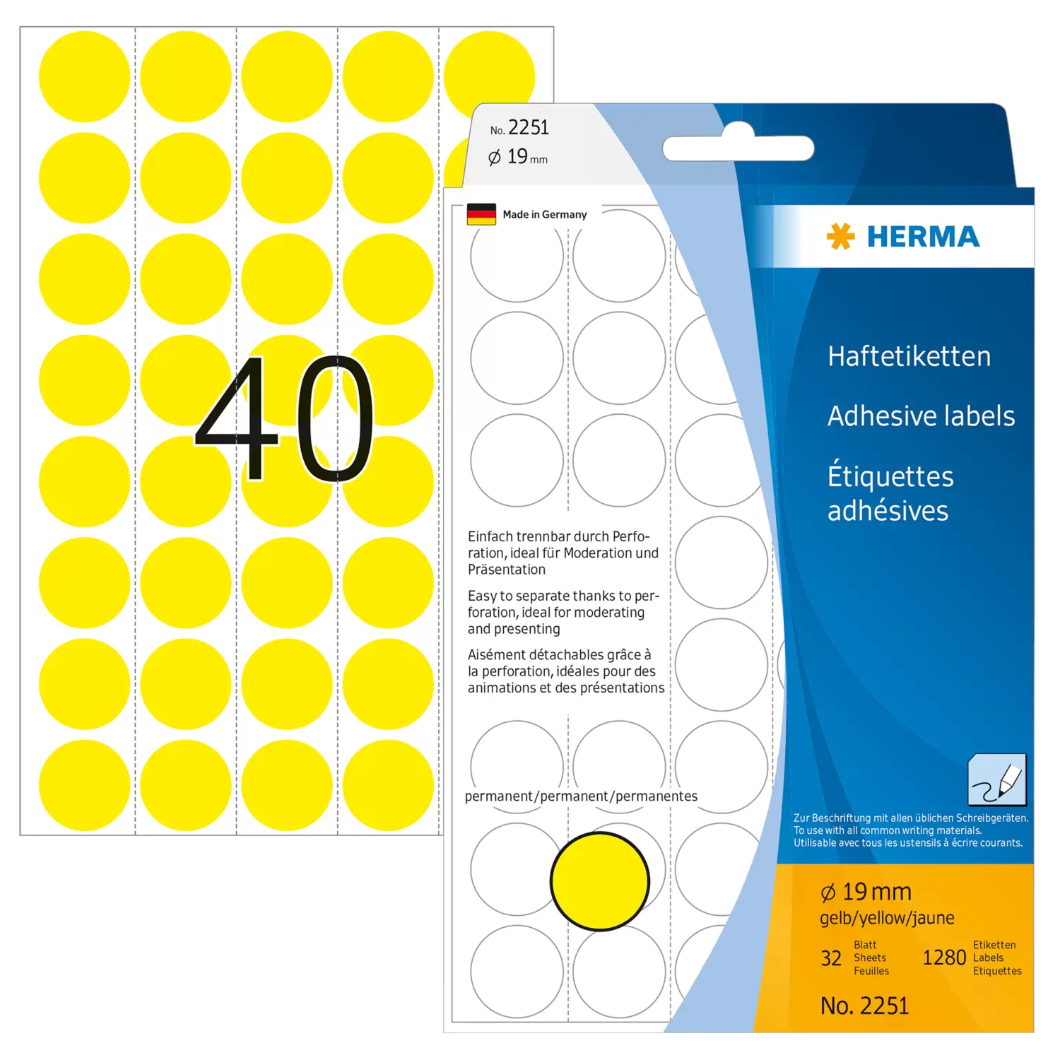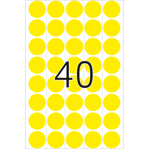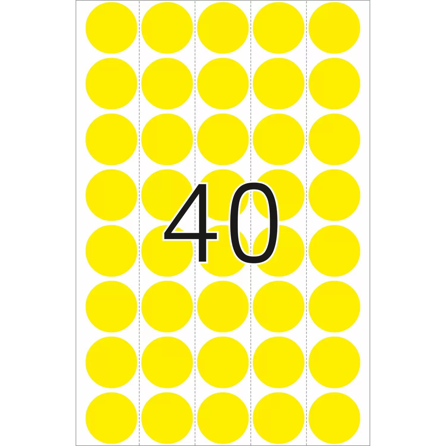 Multipurpose-etiketten, Ø 19 mm, rond geel, geperforeerd, permanent hechtend, om met de hand te besc