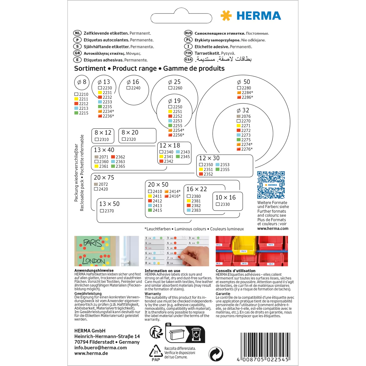 Multipurpose-etiketten, Ø 19 mm, rond fluor oranje, geperforeerd, permanent hechtend, om met de hand