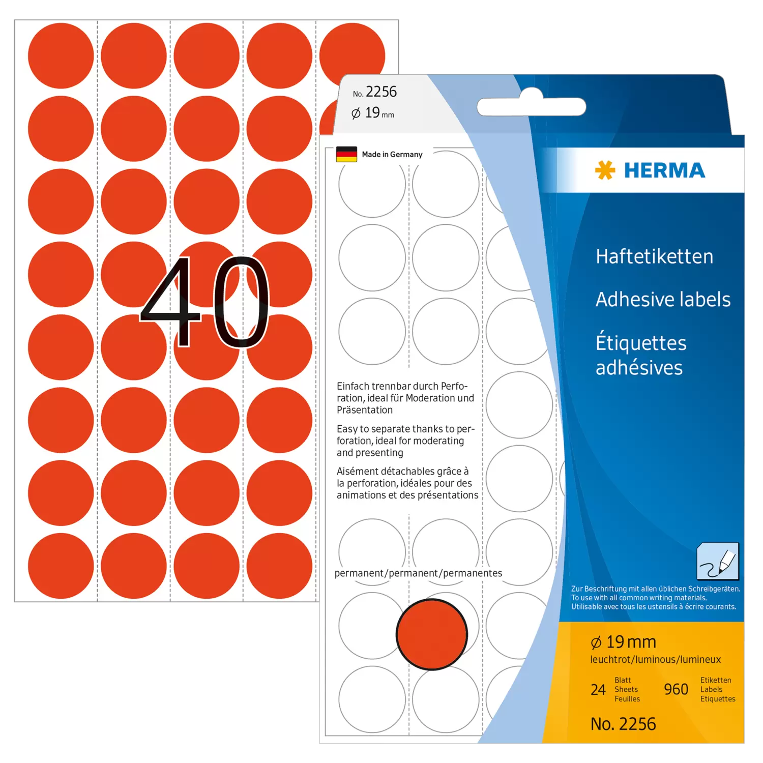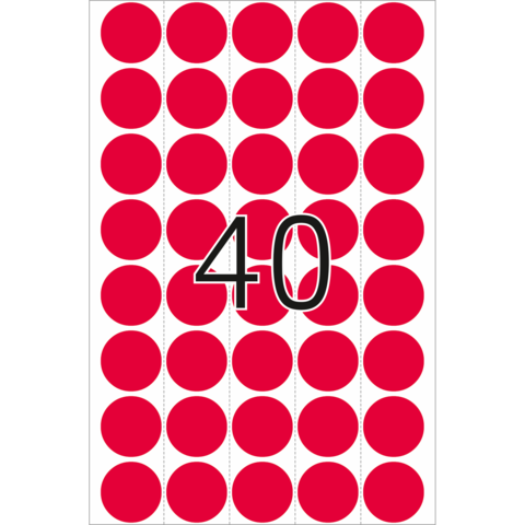 Multipurpose-etiketten, Ø 19 mm, rond fluor rood, geperforeerd, permanent hechtend, om met de hand t