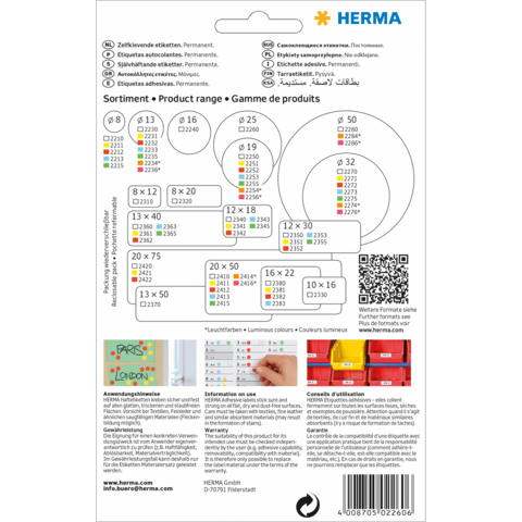 Multipurpose-etiketten, Ø 25 mm, rond wit, permanent hechtend, om met de hand te beschrijven