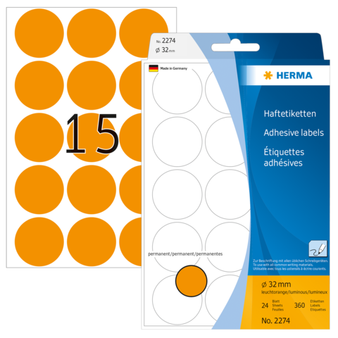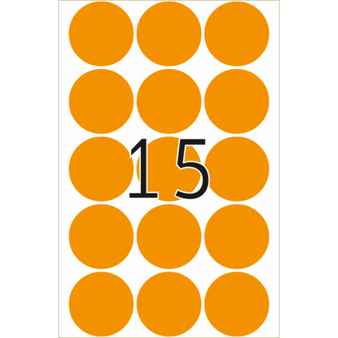 Multipurpose-etiketten, Ø 32 mm, rond fluor oranje, permanent hechtend, om met de hand te beschrijve