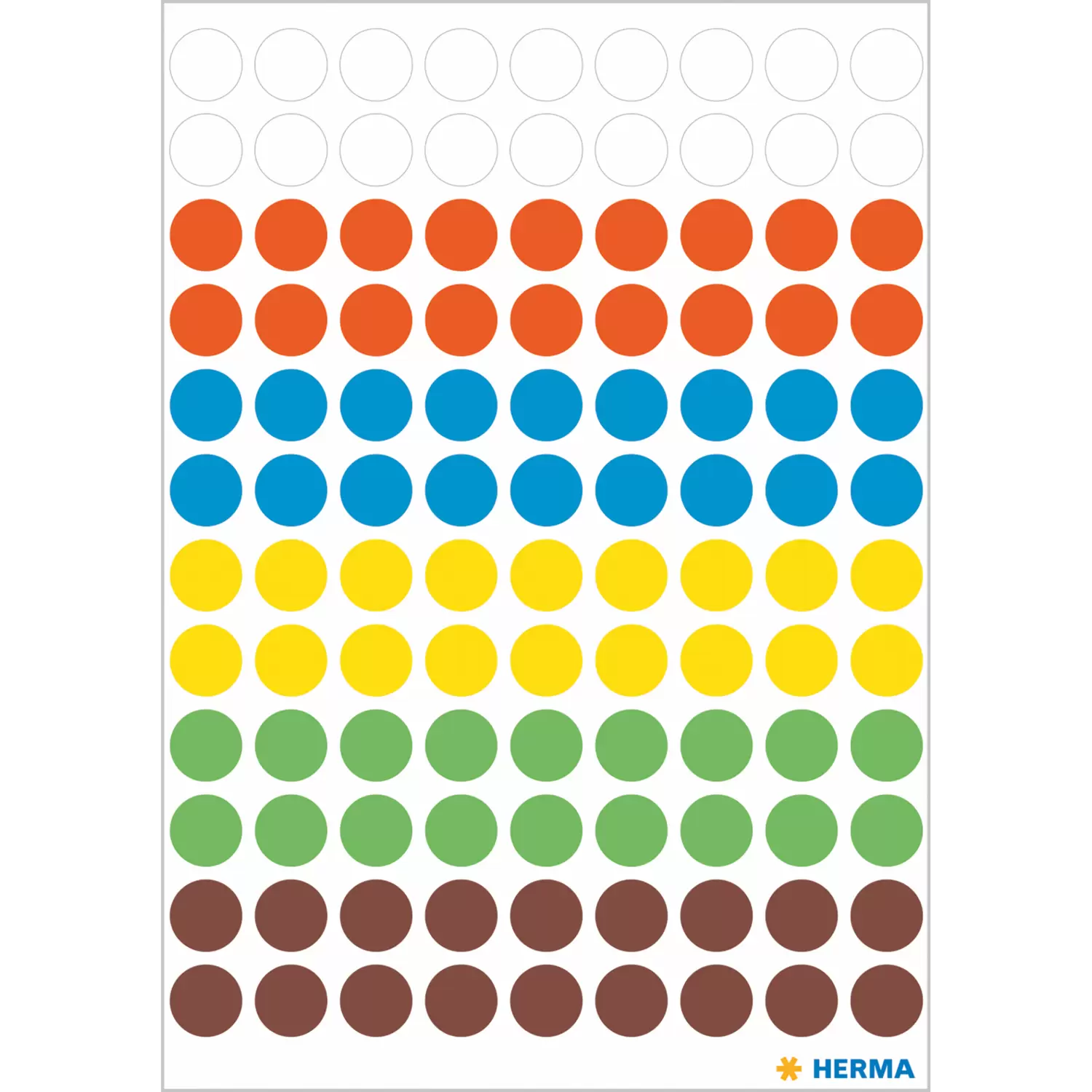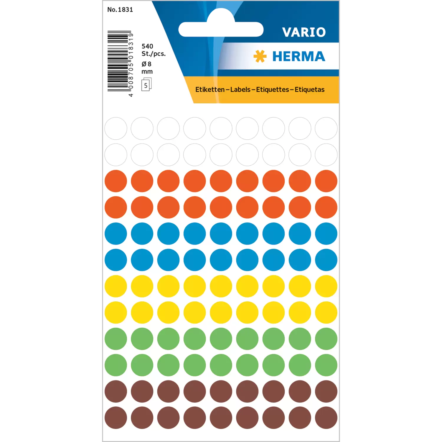 Multipurpose-etiketten, Ø 8 mm, rond kleuren gesorteerd permanent hechtend, om met de hand te beschr