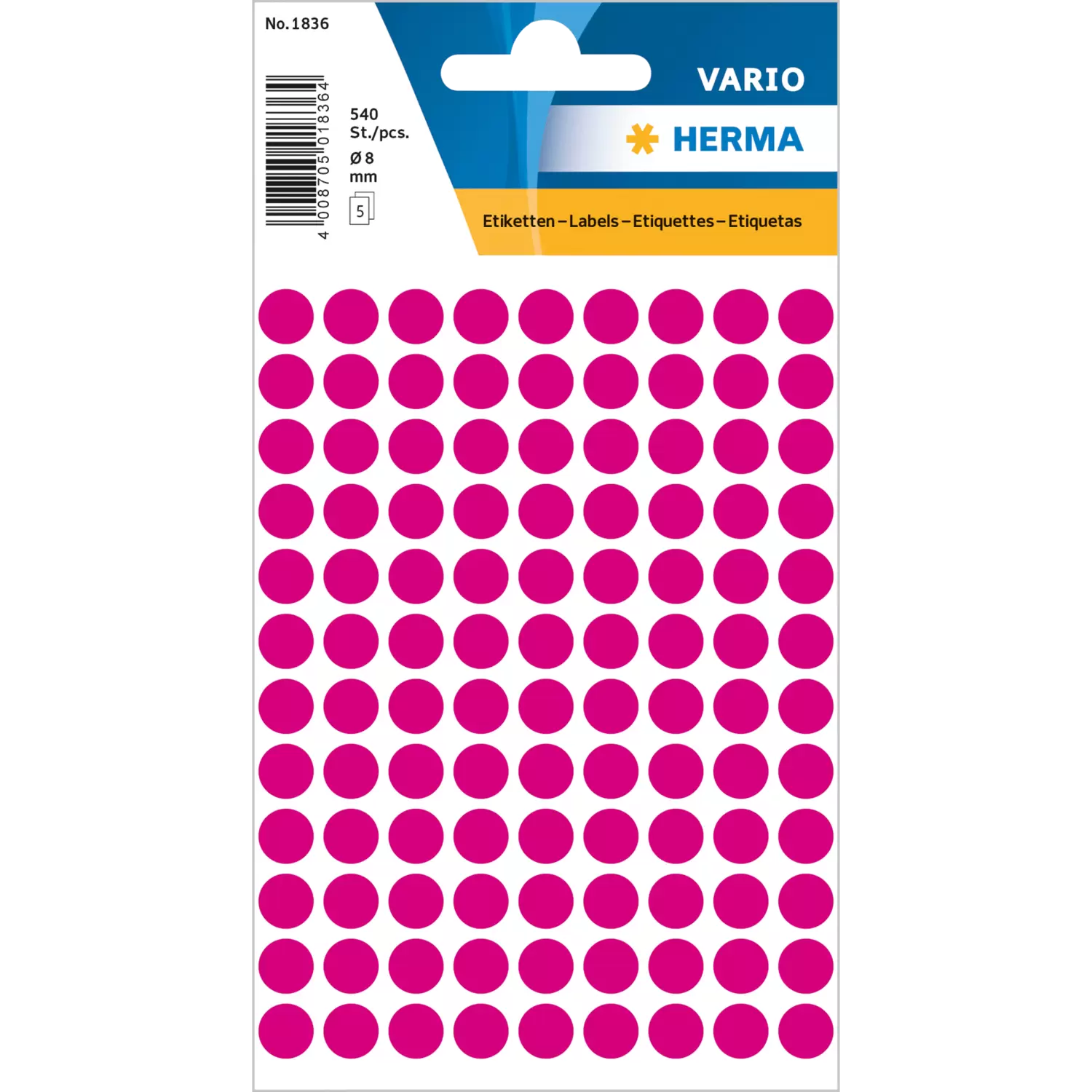 Multipurpose-etiketten, Ø 8 mm, rond roze, permanent hechtend, om met de hand te beschrijven