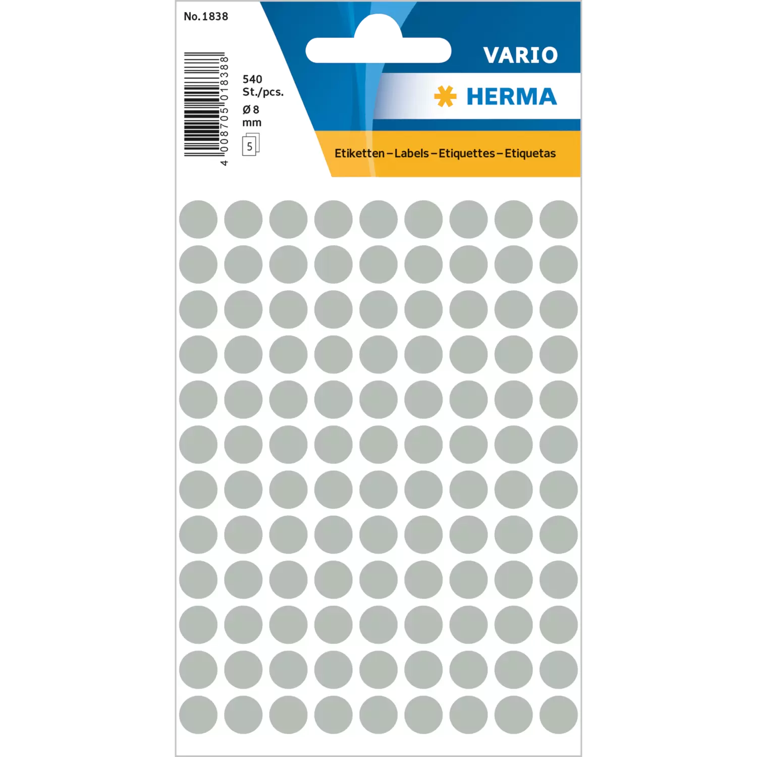 Multipurpose-etiketten, Ø 8 mm, rond grijs, permanent hechtend, om met de hand te beschrijven