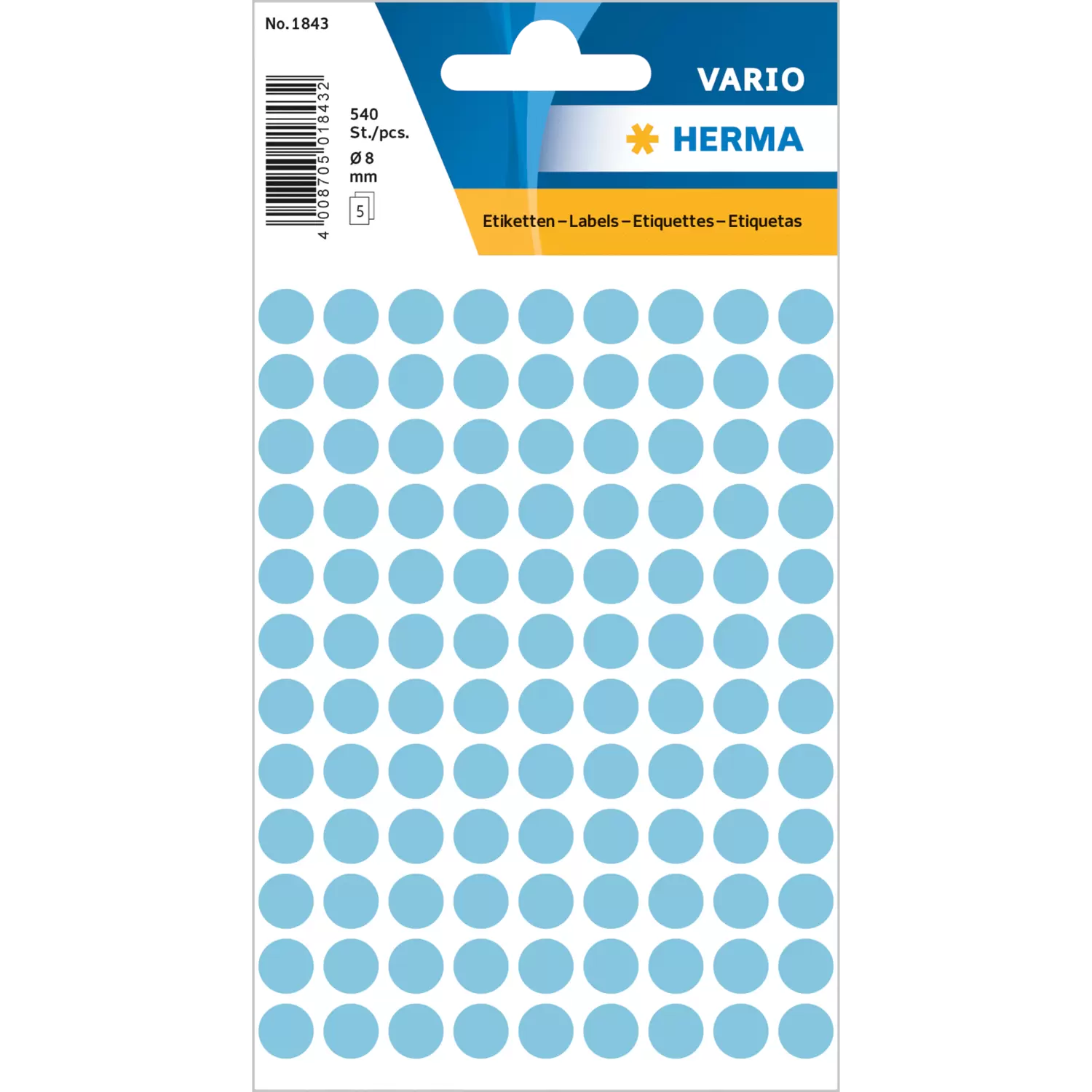 Multipurpose-etiketten, Ø 8 mm, rond blauw, permanent hechtend, om met de hand te beschrijven