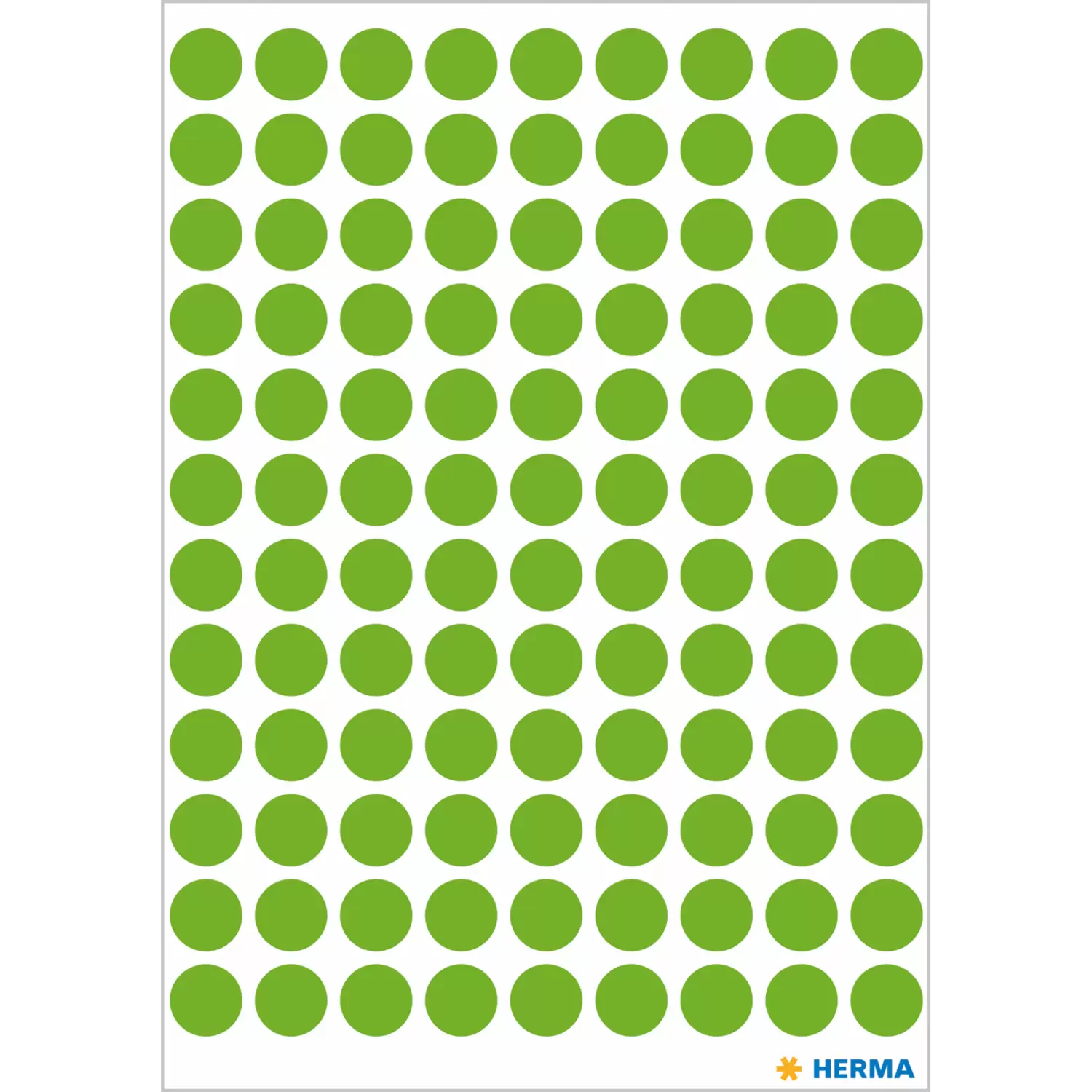 Multipurpose-etiketten, Ø 8 mm, rond fluor groen, permanent hechtend, om met de hand te beschrijven