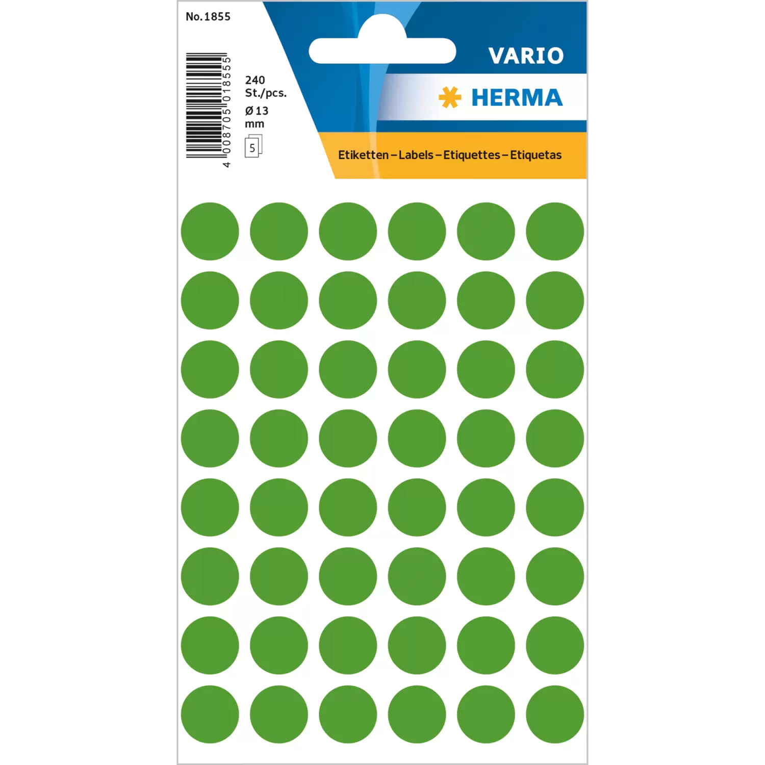 Multipurpose-etiketten, Ø 13 mm, rond donkergroen, permanent hechtend, om met de hand te beschrijven