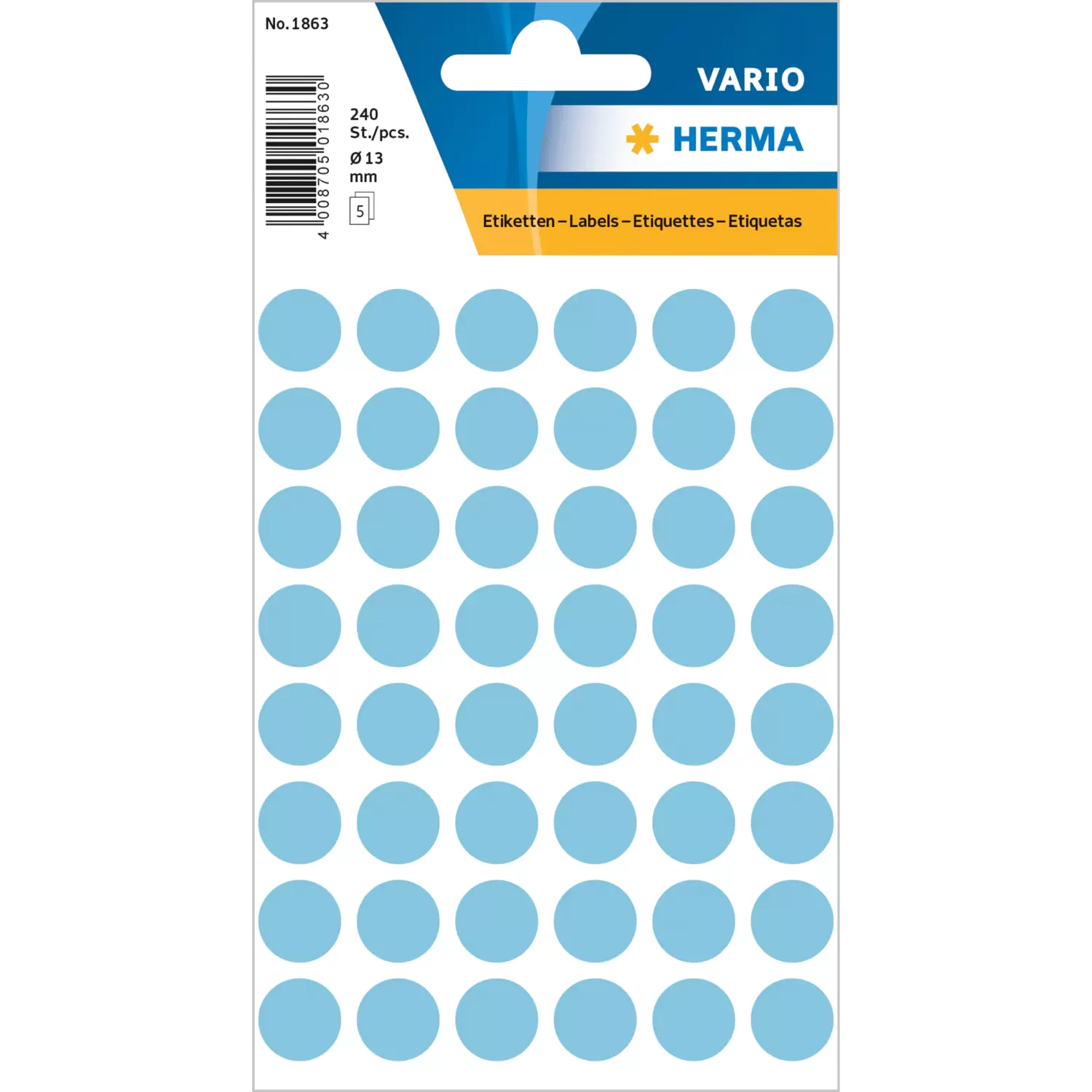 Multipurpose-etiketten, Ø 13 mm, rond blauw, permanent hechtend, om met de hand te beschrijven