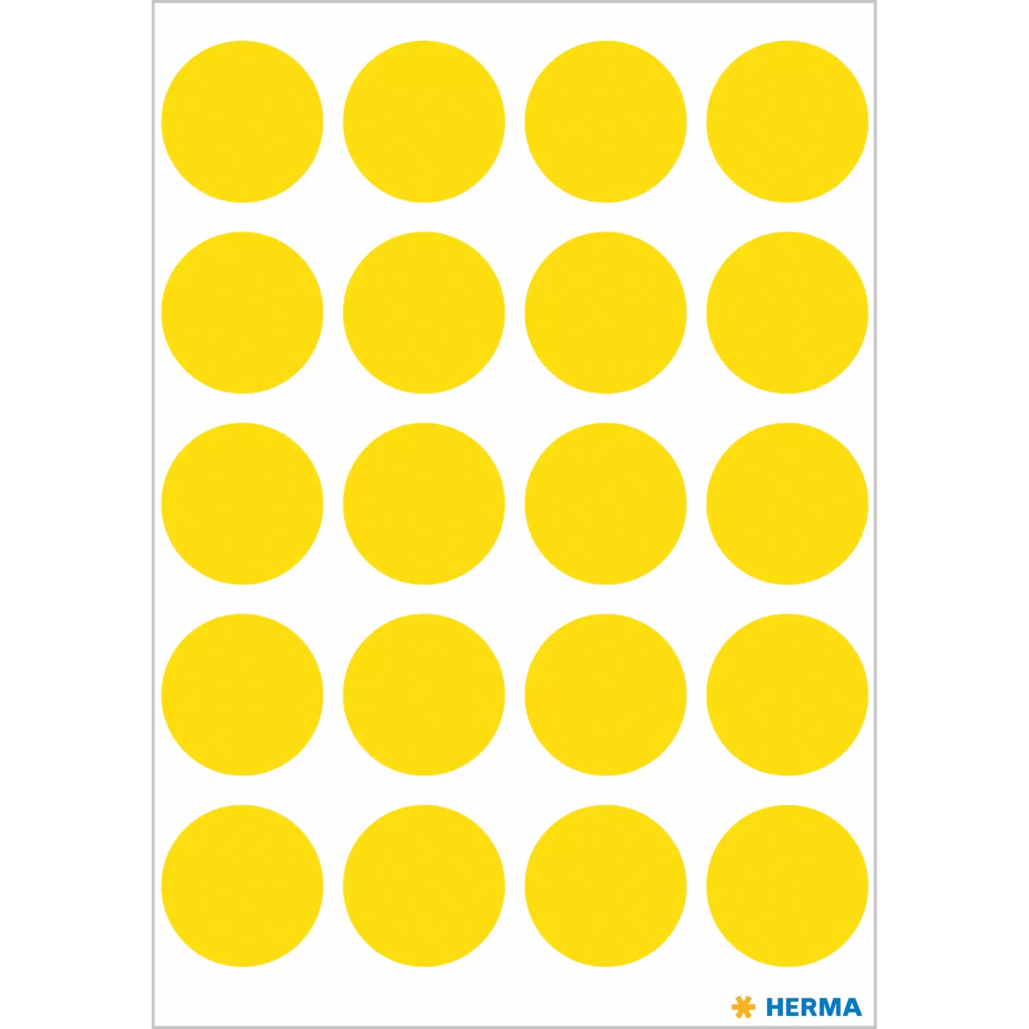 Multipurpose-etiketten, Ø 19 mm, rond geel, permanent hechtend, om met de hand te beschrijven