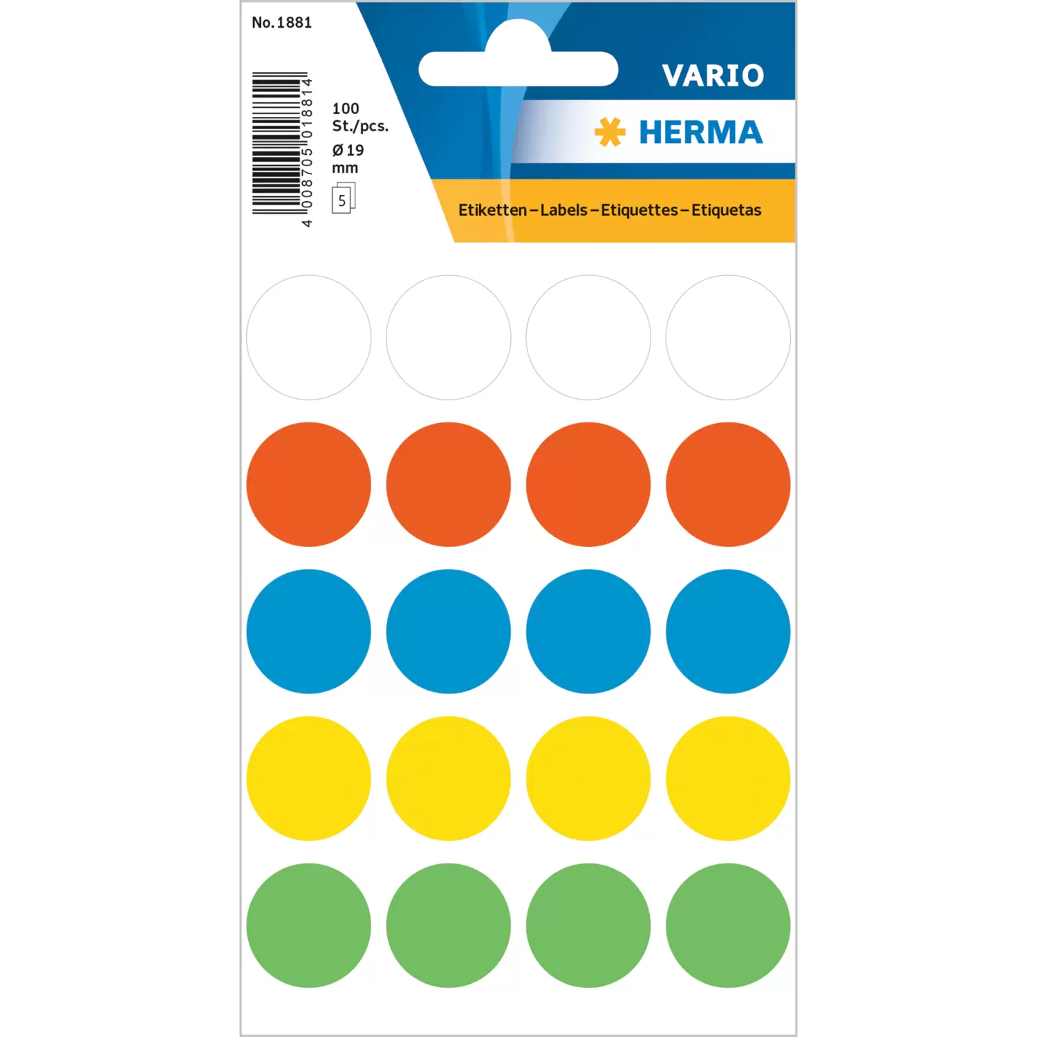 Multipurpose-etiketten, Ø 19 mm, rond kleuren gesorteerd permanent hechtend, om met de hand te besch