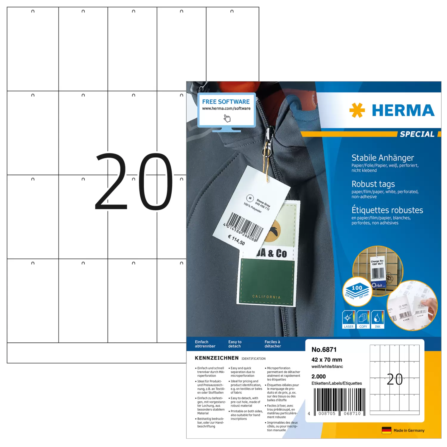 Stevige labels, A4, 42 x 70 mm, wit, geperforeerd, niet-klevend, te bedrukken