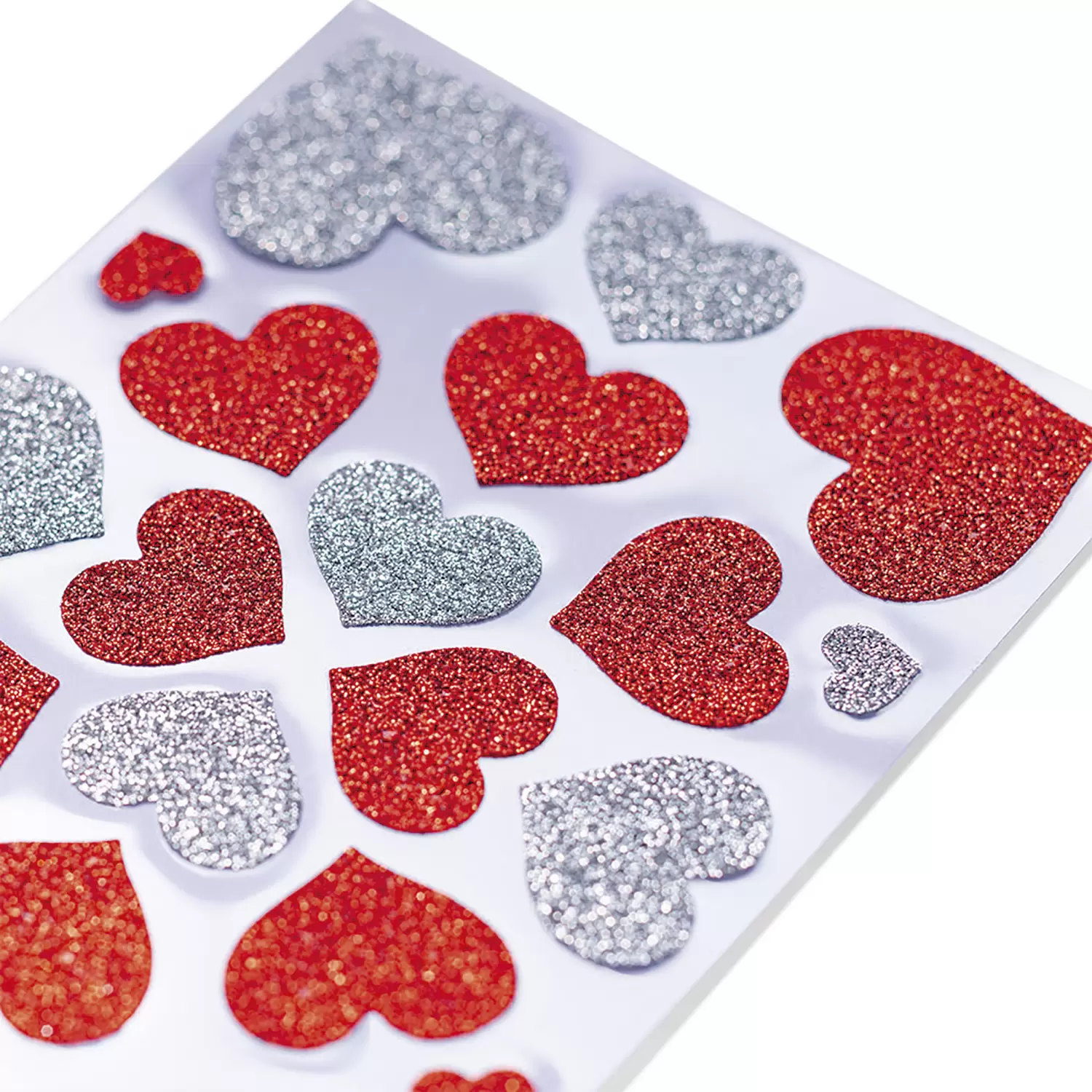 - Glans & glittery, rode en zilveren harten geven nog meer uitdrukking aan boodschappen uit het hart