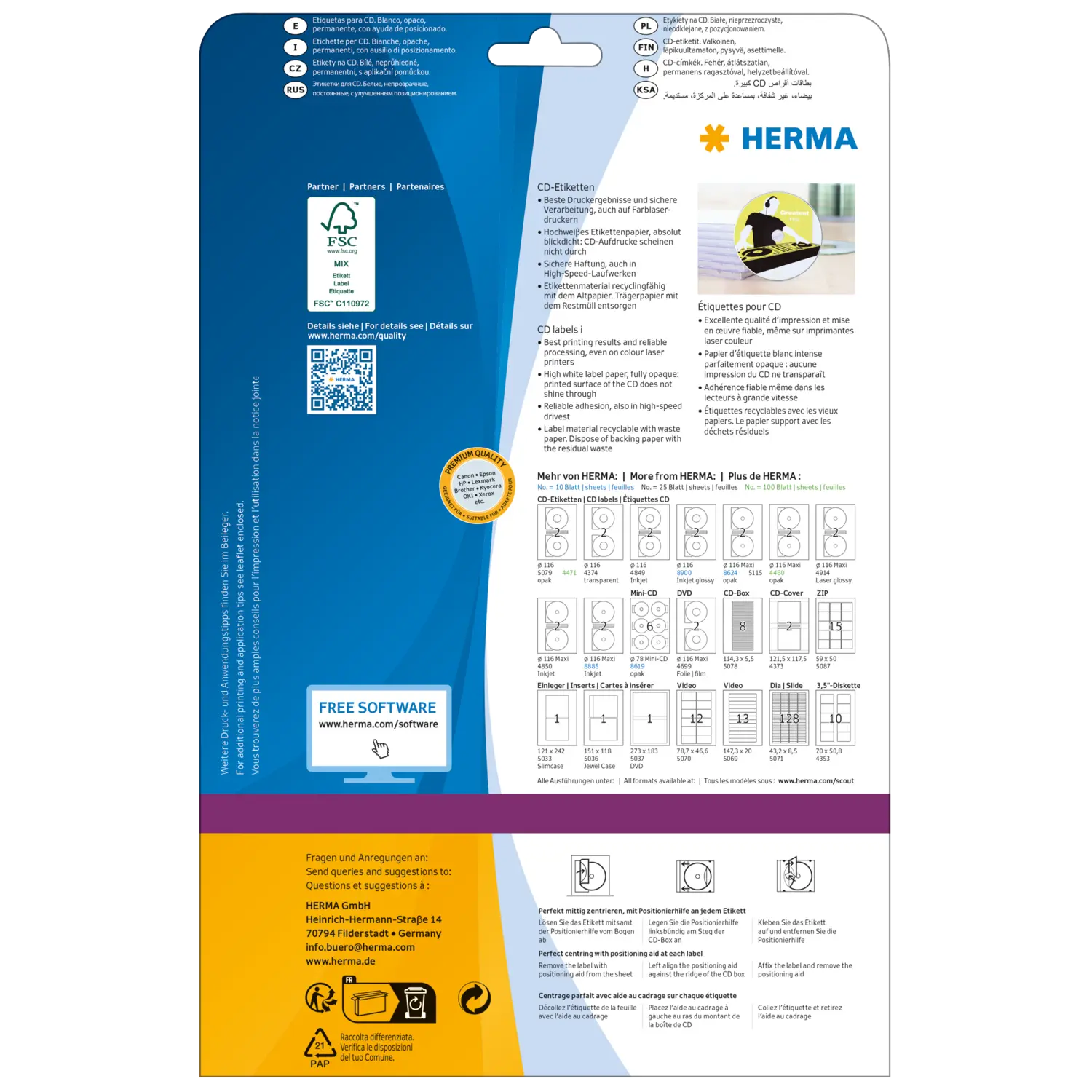 CD-etiketten Mini A4, Ø 78 mm, wit, ondoorzichtig, permanent hechtend