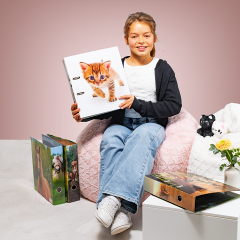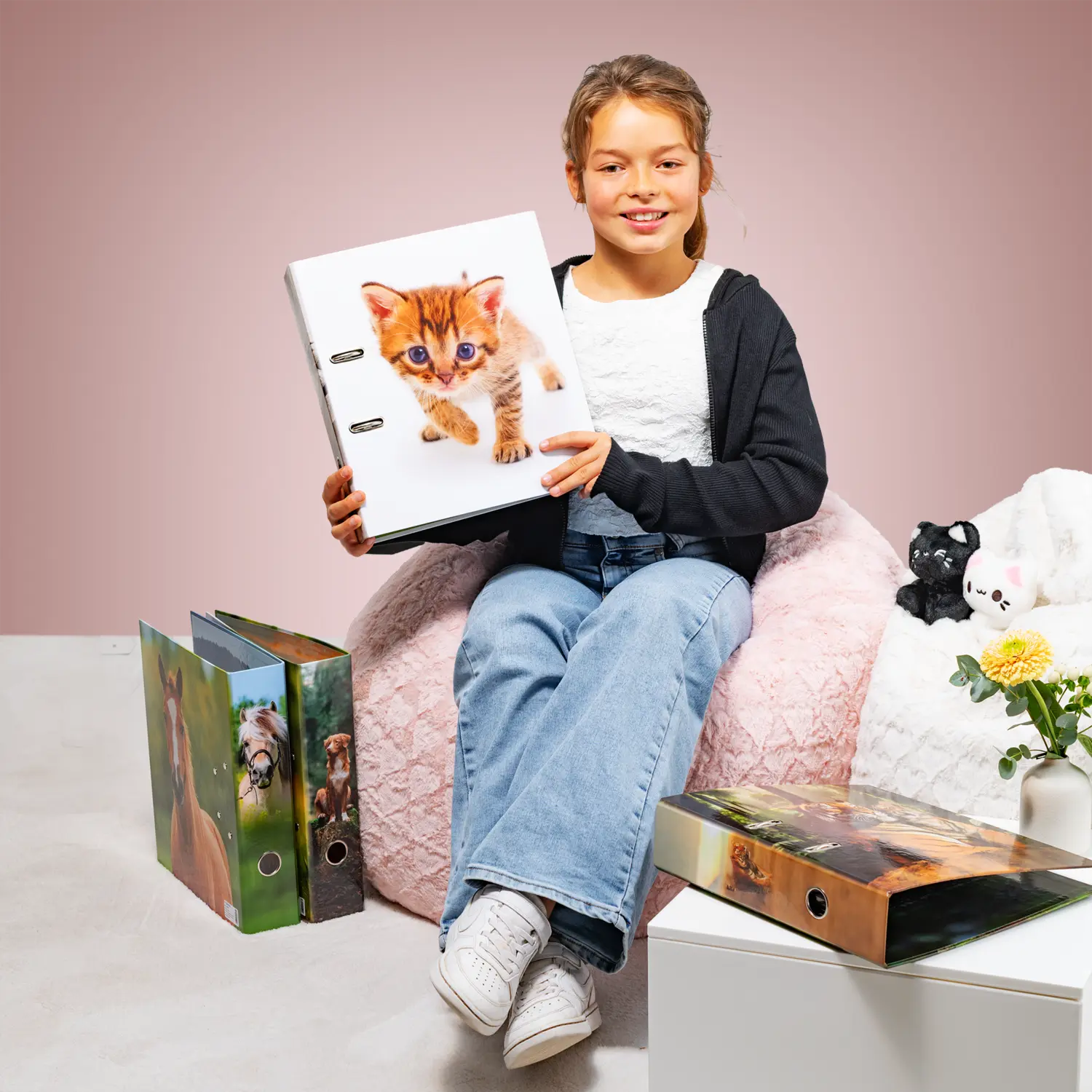 Het nieuwe motief katten uit de serie "Lievelingsdieren" van HERMA is perfect voor kattenliefhebbers die graag uiting willen geven aan hun passie voor deze prachtige dieren. De liefdevol vormgegeven ordners f leuren je werkplek op kantoor of thuis op en maken je dagelijkse werkdag een stukje leuker. Gemaakt van robuust karton en zorgvuldig afgewerkt, bieden ze een ideale bewaarplek voor belangrijke documenten. Met een stevig hefboommechaniek en aansprekende binnenprint zijn deze ordners niet alleen praktisch, maar ook een echte blikvanger op elk bureau of in de kast. De charmante kattenmotieven inspireren en laten het enthousiasme voor deze knuffelige vriendjes zien. Een persoonlijke lievelingsdier ordner zorgt ervoor dat met plezier organiseren en overzicht scheppen een fluitje van een cent wordt.