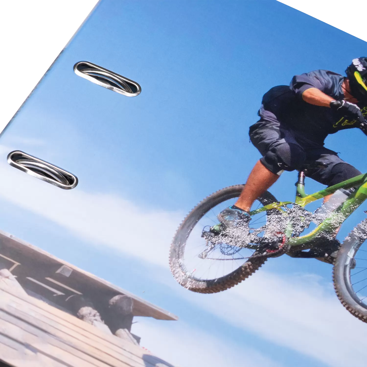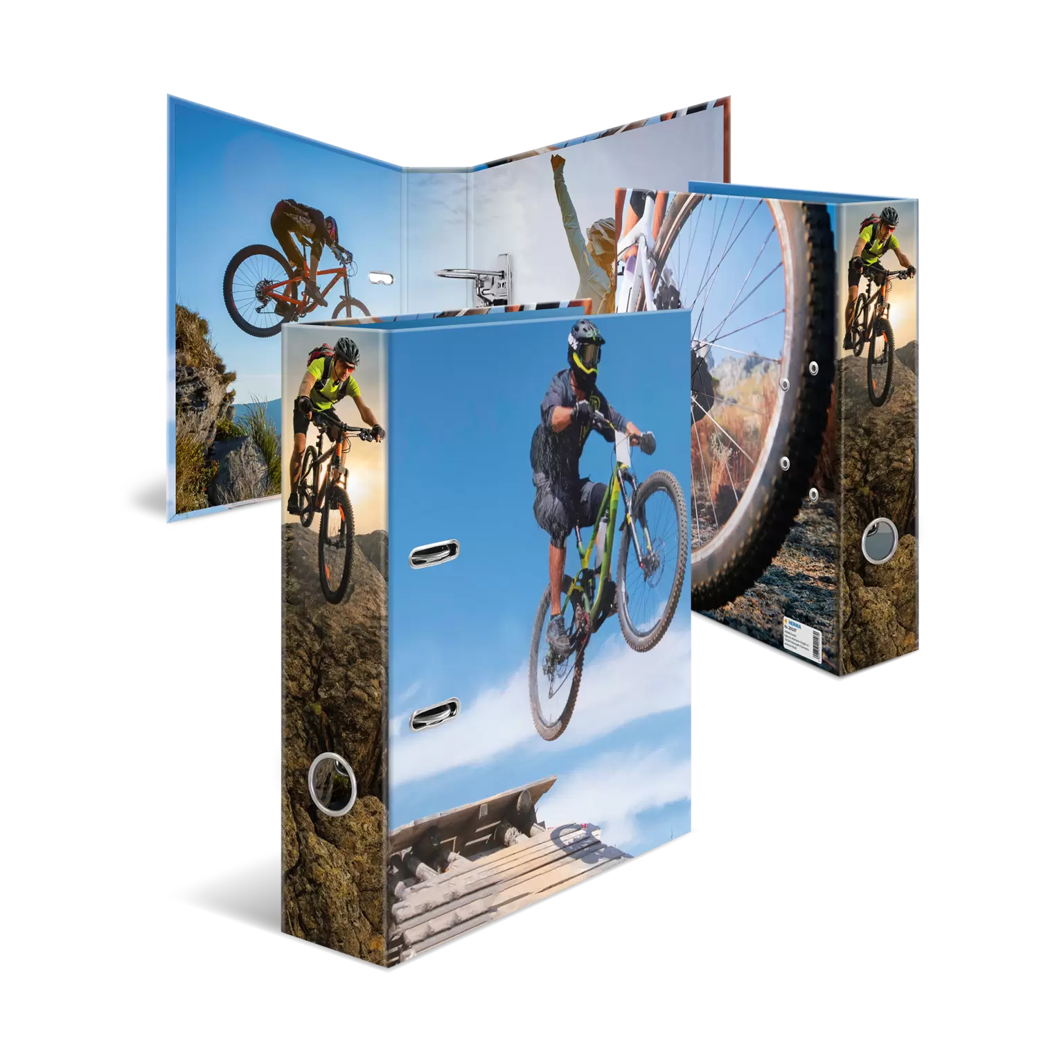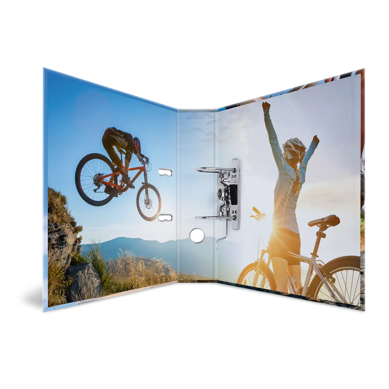 - Dynamische thema-ordner met sportmotief "Mountainbike", met hoogwaardige afwerking, van buiten en van binnen volledig bedrukt