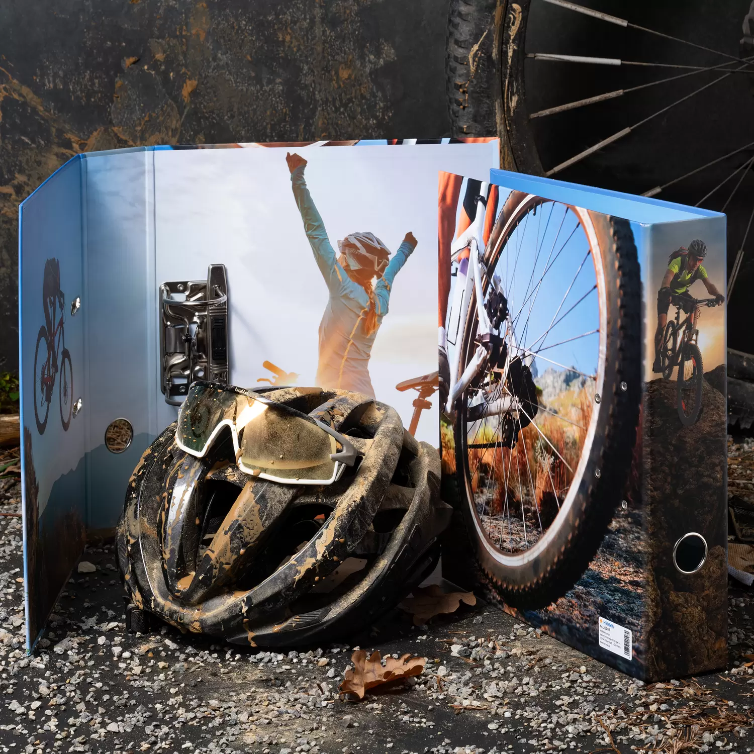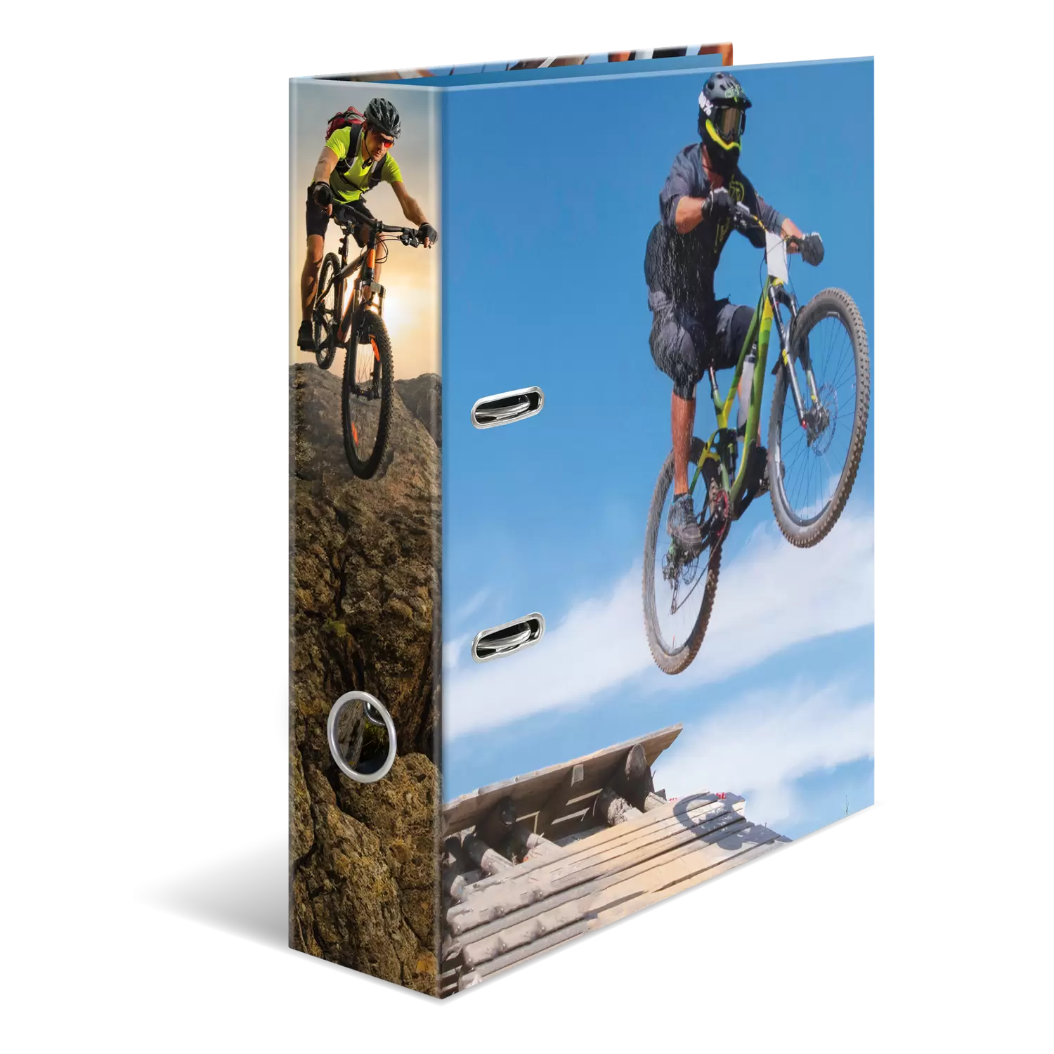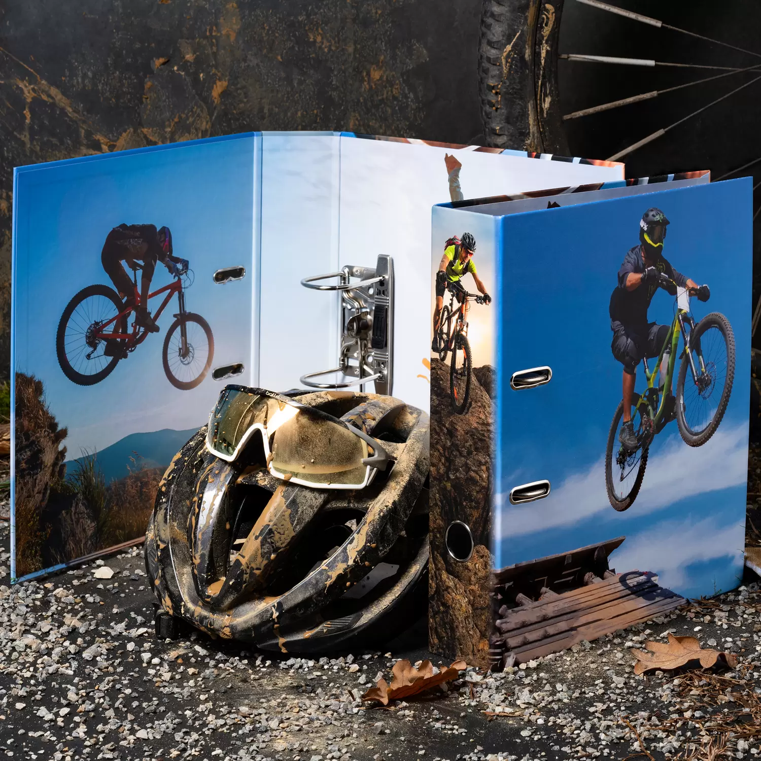 - Dynamische thema-ordner met sportmotief "Mountainbike", met hoogwaardige afwerking, van buiten en van binnen volledig bedrukt