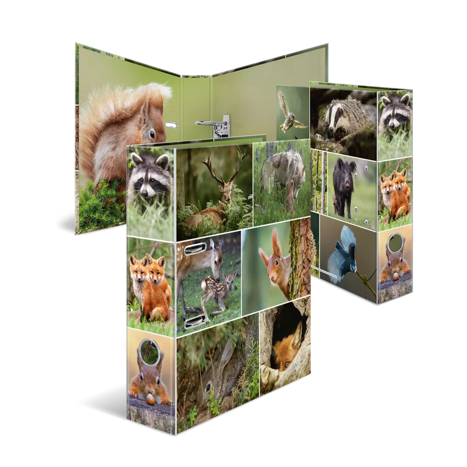 DIN A4 thema-ordner met prachtige foto's van bosdieren. Van de partij zijn eekhoorns, vossen, reeën, hazen en nog veel meer! Leuk voor alle dierenliefhebbers en vooral voor wie het liefst naar het bos gaat. De ordner is hoogwaardig gemaakt van stevig karton, met handig vingergat en hefboommechanisme (incl. klem), bedrukt aan de binnenzijde, voor het optimaal opbergen van geperforeerde documenten en transparante hoezen. Voor optimale orde thuis, op school, universiteit of op kantoor en tegelijkertijd een echte blikvanger.