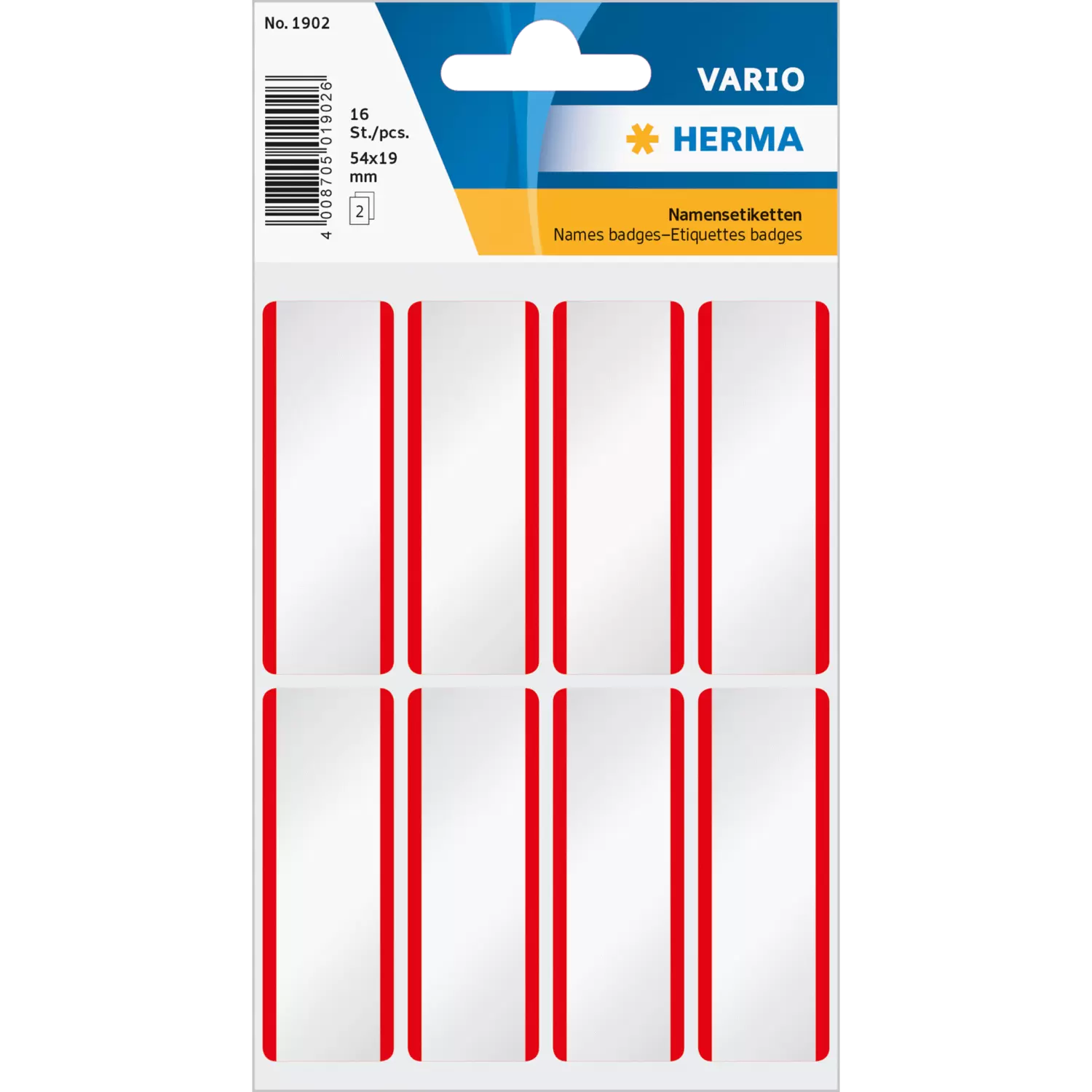 Naam etiketten 54x19 mm wit/rood strepen verwijderbaar acetaat-zijde 16 st.