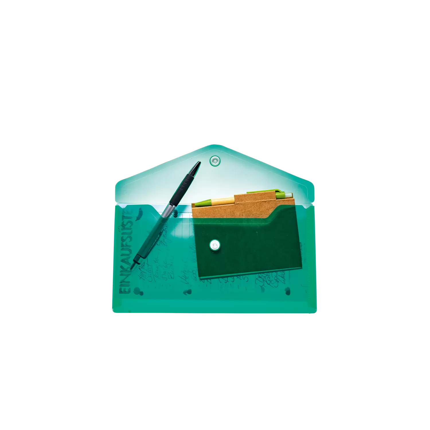 Het praktische HERMA opbergmapje van het formaat DIN lang (22 x 12 cm) in donkergroen is de veelzijdige organizer voor onderweg, thuis, op het werk, in school en nog veel meer. Het handzame mapje is gemaakt van robuust transparant polypropyleen en daardoor ongevoelig voor vuil en vocht. Zo blijven bonnetjes, brieven, reisdocumenten, tekeningen of kleinere gebruiksvoorwerpen schoon en netjes bij elkaar.