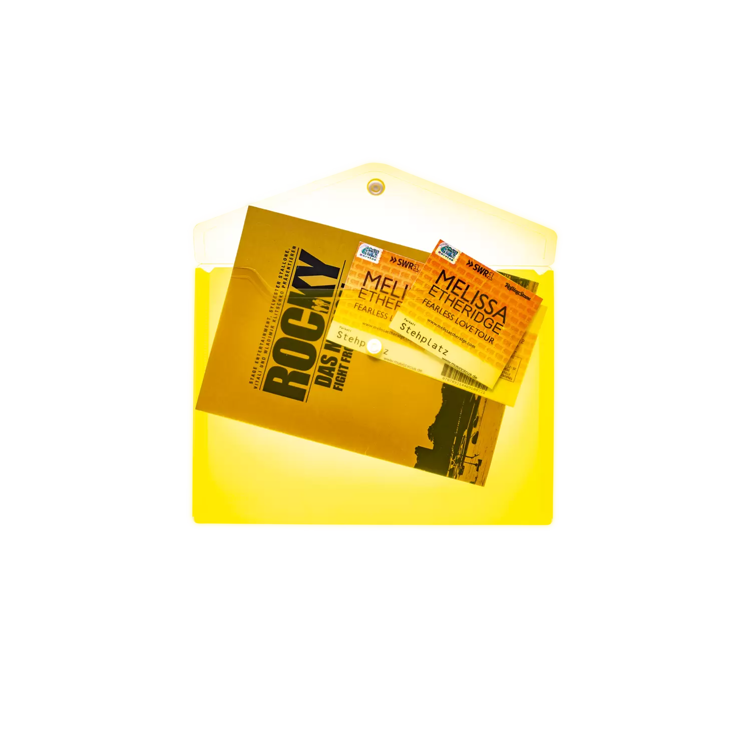 Het praktische HERMA opbergmapje van het formaat DIN A5 (25 x 18 cm) in geel is de veelzijdige organizer voor onderweg, thuis, op het werk, in school en nog veel meer. Het handzame mapje is gemaakt van robuust transparant polypropyleen en daardoor ongevoelig voor vuil en vocht. Zo blijven bonnetjes, brieven, reisdocumenten, tekeningen of kleinere gebruiksvoorwerpen schoon en netjes bij elkaar.
