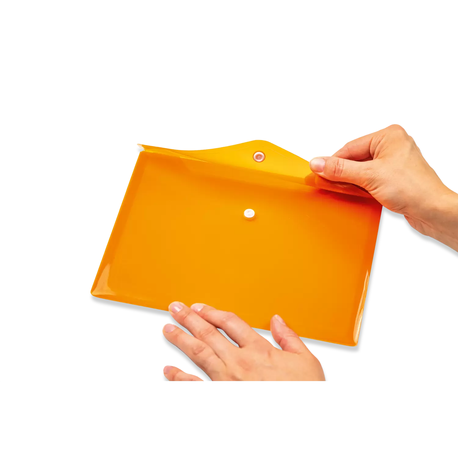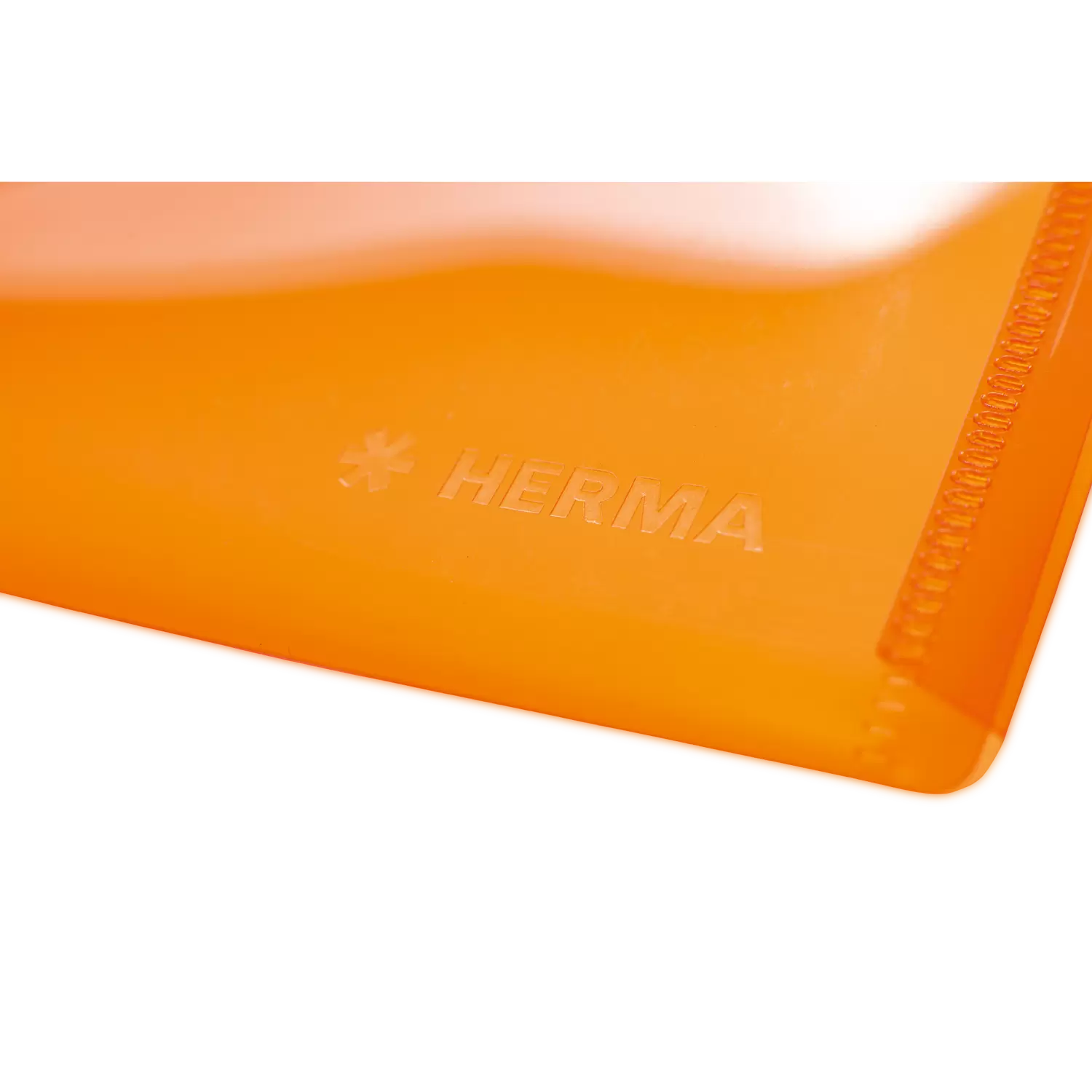 Het praktische HERMA opbergmapje van het formaat DIN A5 (25 x 18 cm) in oranje is de veelzijdige organizer voor onderweg, thuis, op het werk, in school en nog veel meer. Het handzame mapje is gemaakt van robuust transparant polypropyleen en daardoor ongevoelig voor vuil en vocht. Zo blijven bonnetjes, brieven, reisdocumenten, tekeningen of kleinere gebruiksvoorwerpen schoon en netjes bij elkaar.