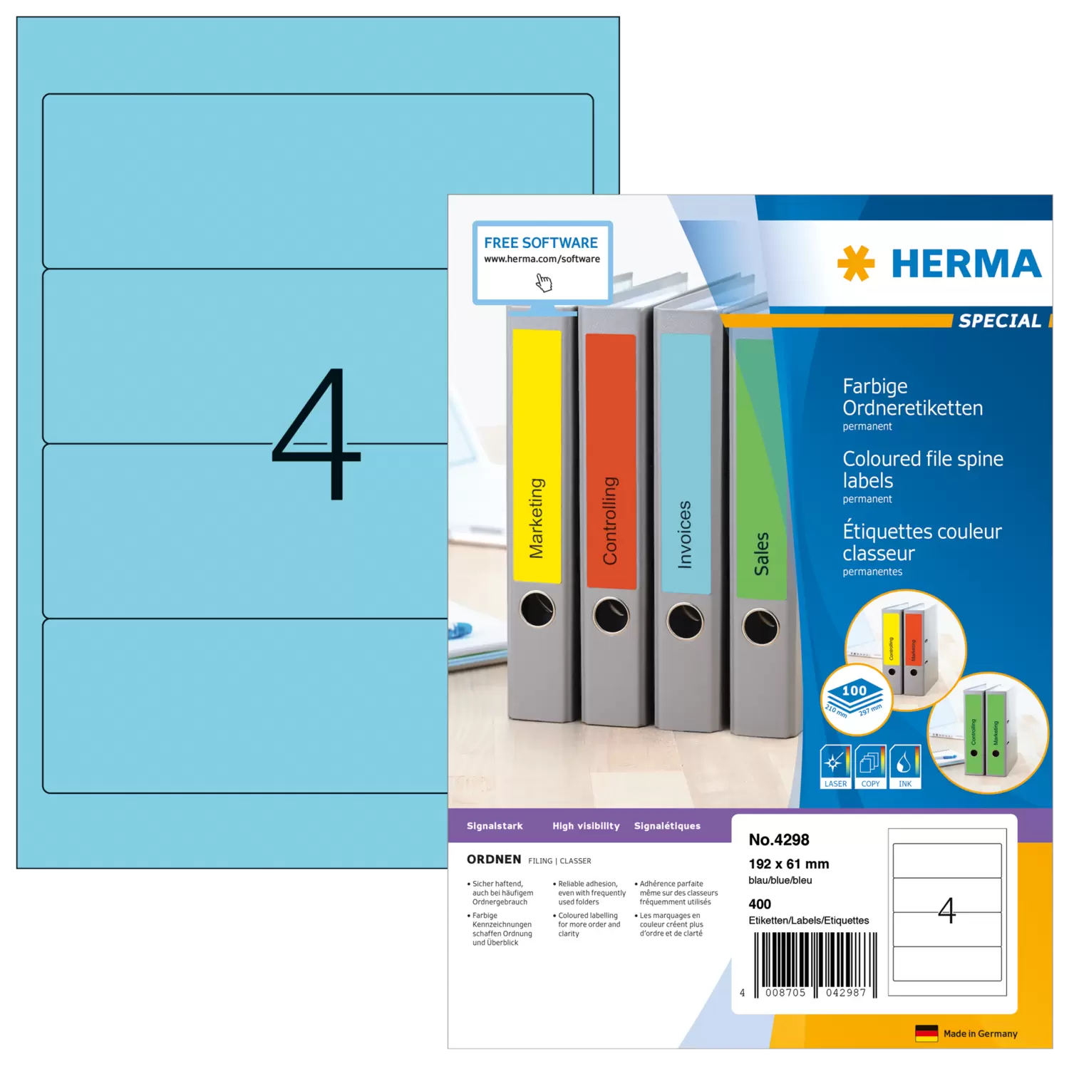 Ordneretiketten, A4, 192 x 61 mm, blauw, permanent hechtend