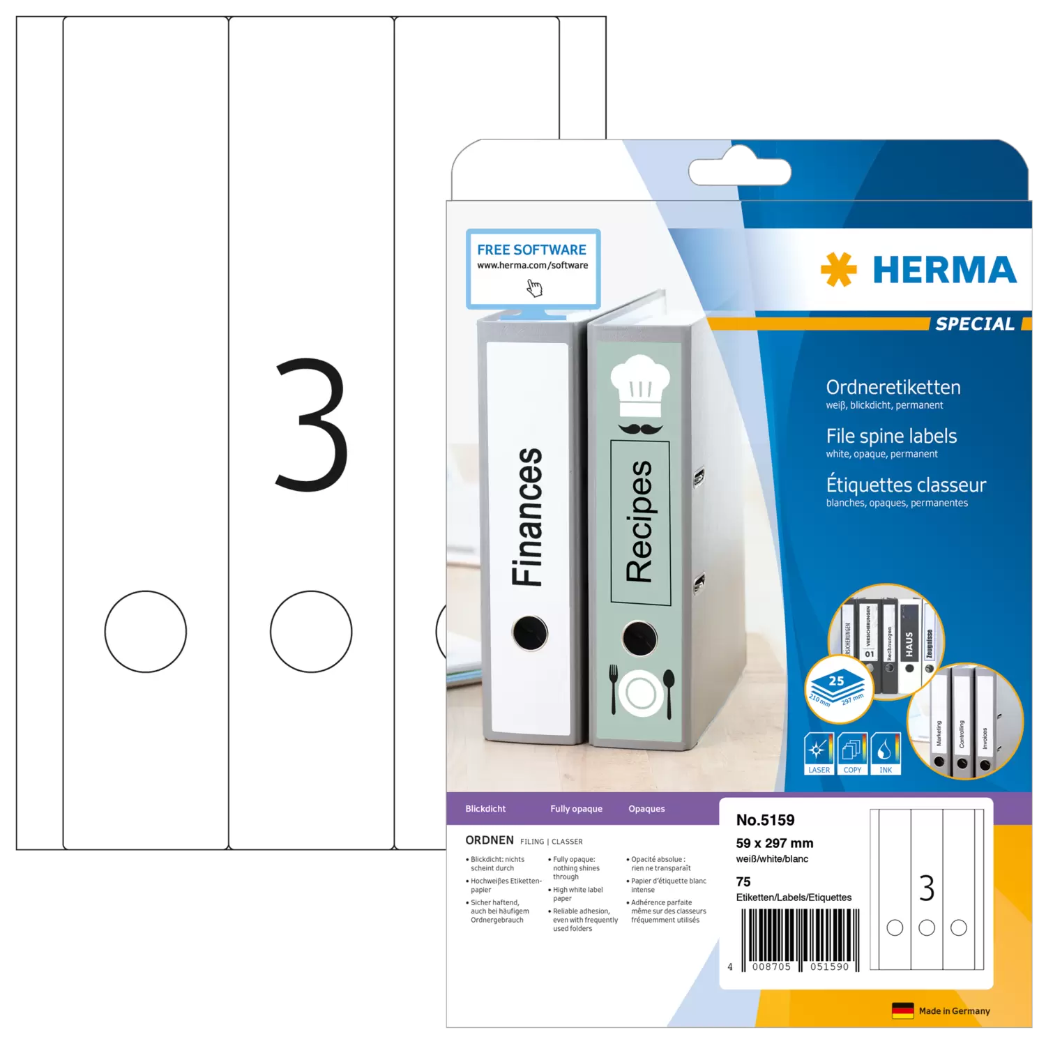 Ordneretiketten, A4, 59 x 297 mm, wit, ondoorzichtig, permanent hechtend