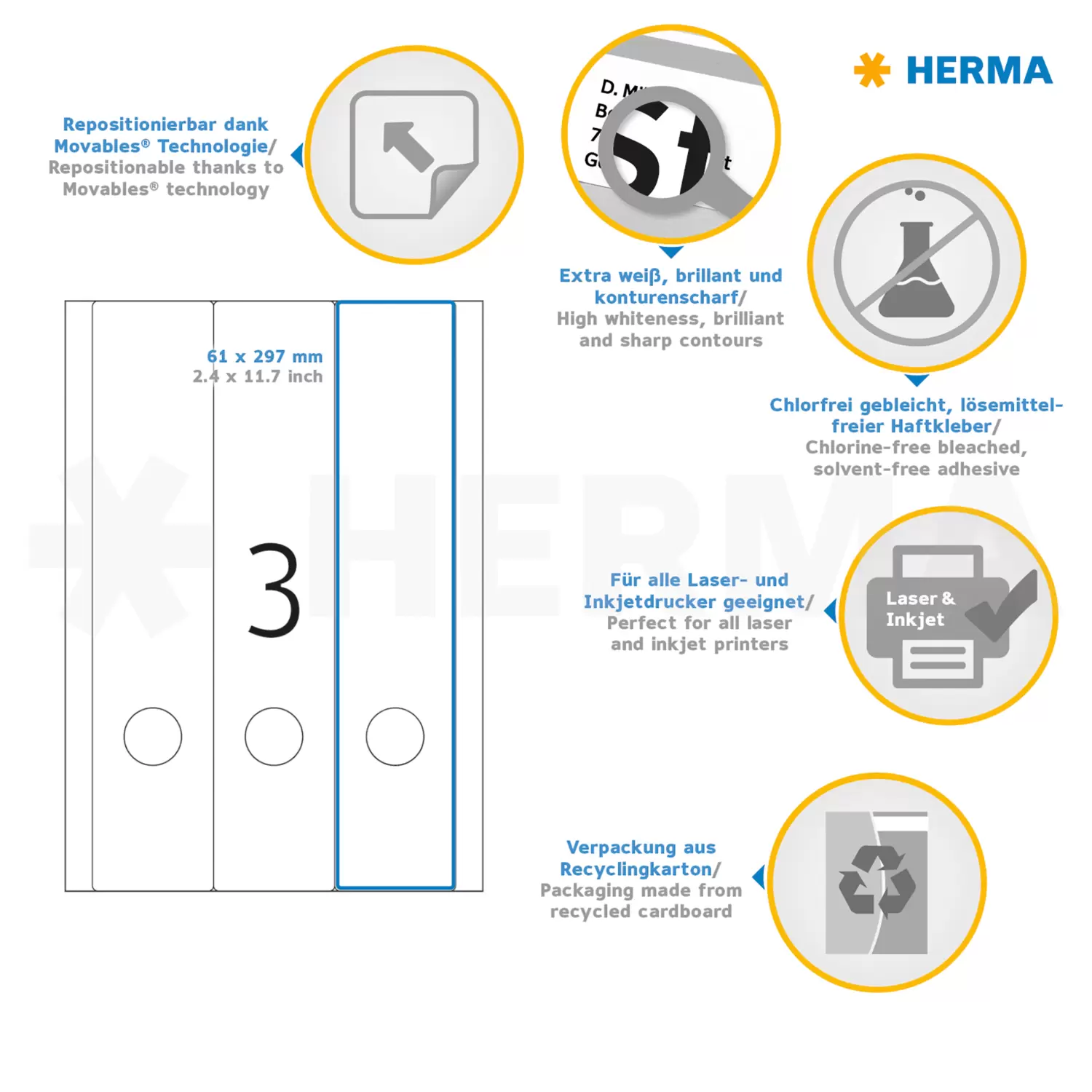 Verwijderbare ordneretiketten, A4, 61 x 297 mm, wit, ondoorzichtig