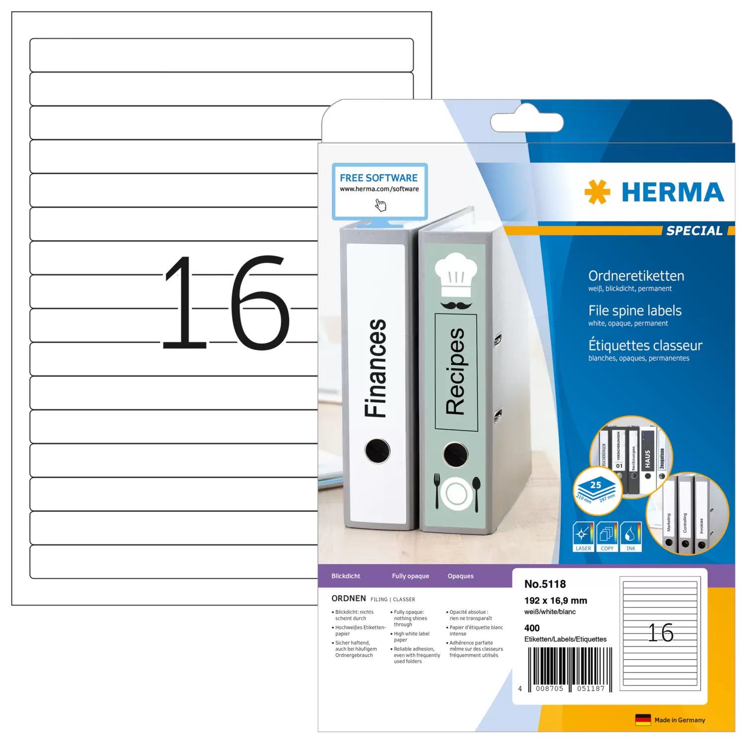 De witte ordneretiketten zijn absoluut ondoorzichtig en hebben een zeer hoge witheidsgraad zodat oude opschriften niet doorschijnen.