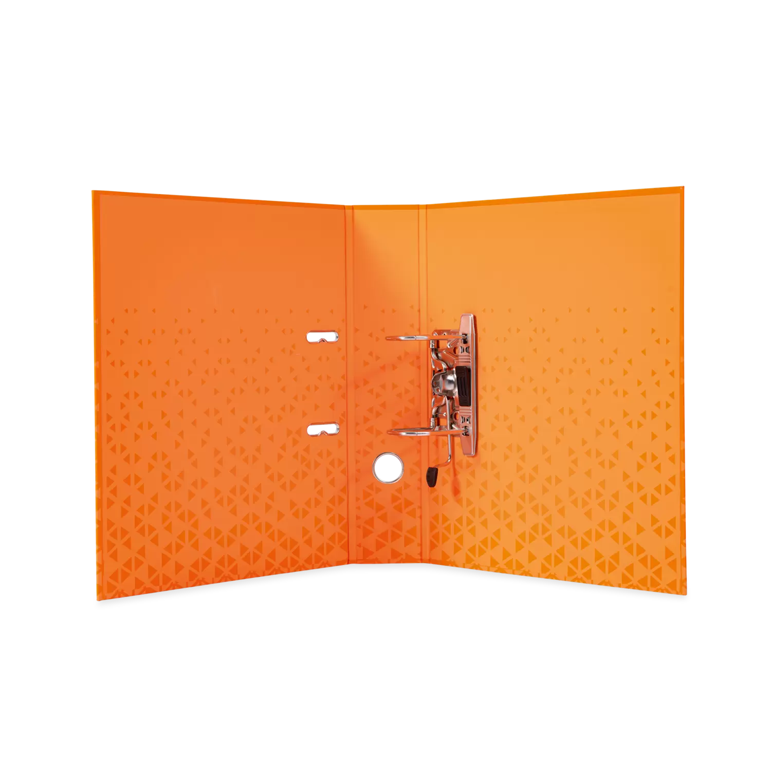 De nieuwe ordner "Color" in de kleur oranje voor documenten in het formaat DIN A4 is een absolute must-have voor iedereen die waarde hecht aan stijl en organisatie. Deze ordner is niet alleen functioneel, maar ook een echte blikvanger. Bijzonder is het met lak afgewerkte oppervlak, dat een uniek softtouch-gevoel geeft. Een groot aantal kleine driehoekige patronen is voorzien van hoogwaardige lak, wat de ordner een stijlvolle en moderne look verleent. Naast het uiterlijke aspect overtuigt de ordner ook door zijn praktische eigenschappen. Hij biedt voldoende plek voor documenten in DIN A4-formaat en zorgt ervoor dat deze veilig en geordend kunnen worden bewaard. Dankzij het zeer stevige materiaal heeft de ordner een lange levensduur en kan tegen een stootje.
