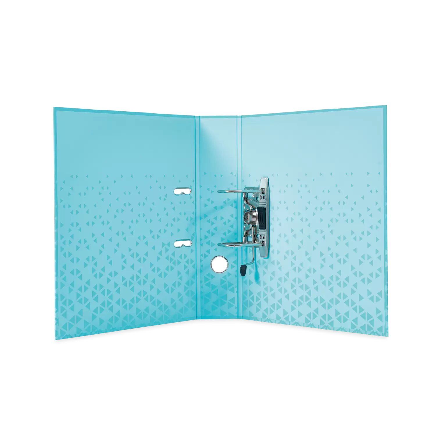 De nieuwe ordner "Color" in de kleur turquoise voor documenten in het formaat DIN A4 is een absolute must-have voor iedereen die waarde hecht aan stijl en organisatie. Deze ordner is niet alleen functioneel, maar ook een echte blikvanger. Bijzonder is het met lak afgewerkte oppervlak, dat een uniek softtouch-gevoel geeft. Een groot aantal kleine driehoekige patronen is voorzien van hoogwaardige lak, wat de ordner een stijlvolle en moderne look verleent. Naast het uiterlijke aspect overtuigt de ordner ook door zijn praktische eigenschappen. Hij biedt voldoende plek voor documenten in DIN A4-formaat en zorgt ervoor dat deze veilig en geordend kunnen worden bewaard. Dankzij het zeer stevige materiaal heeft de ordner een lange levensduur en kan tegen een stootje.