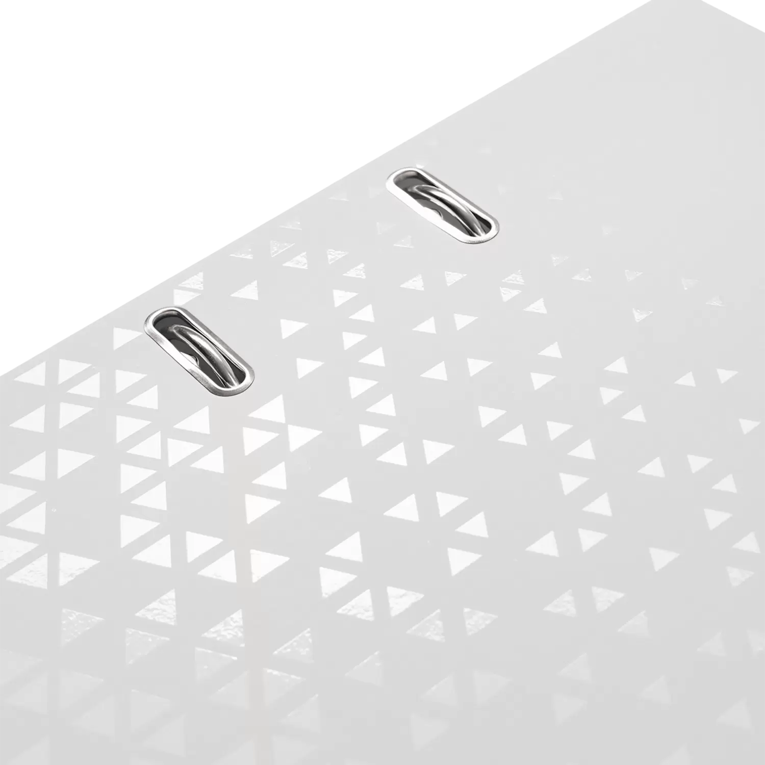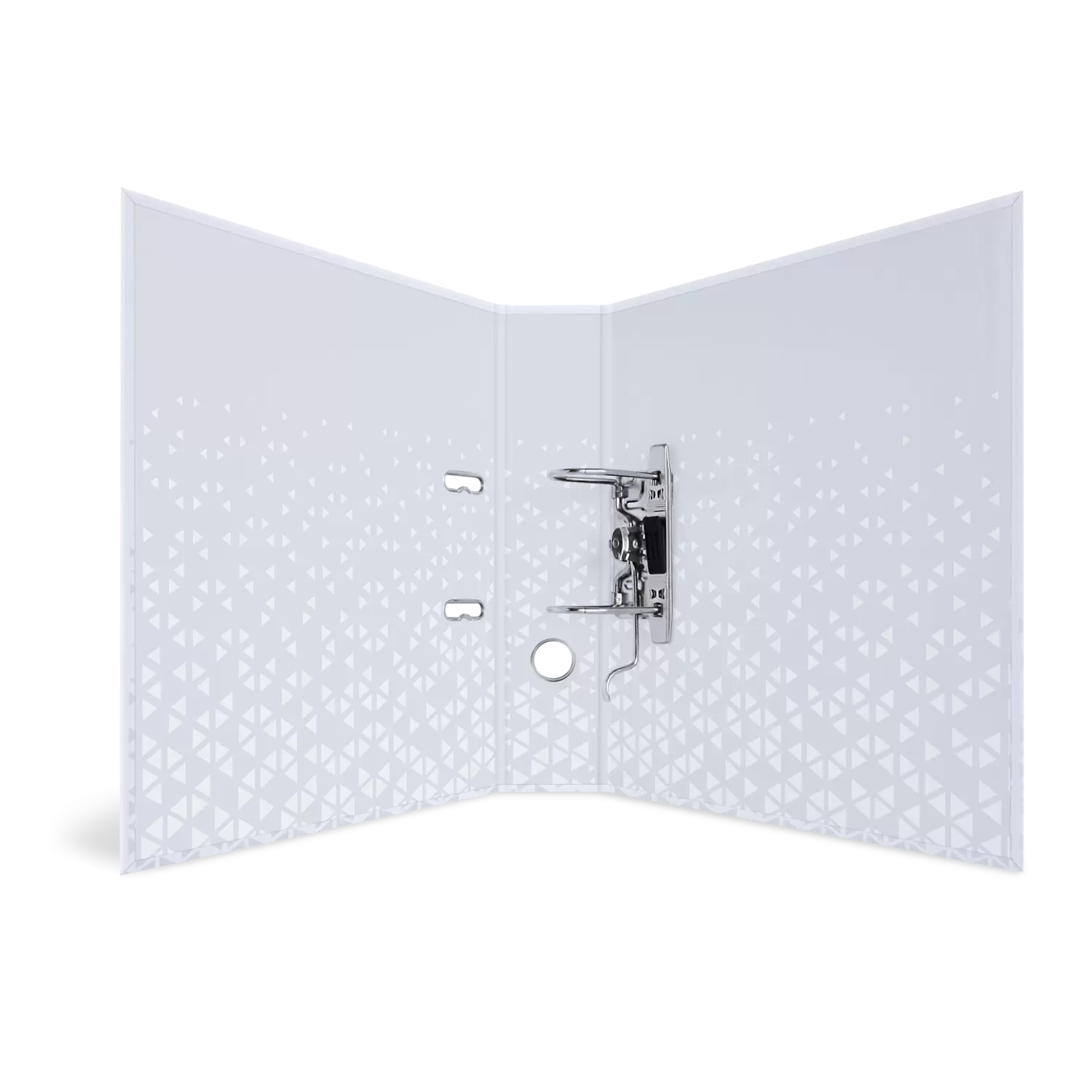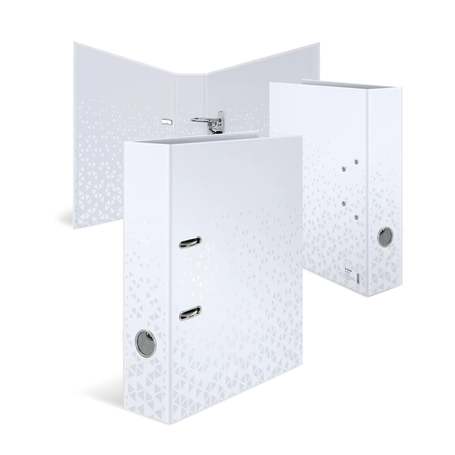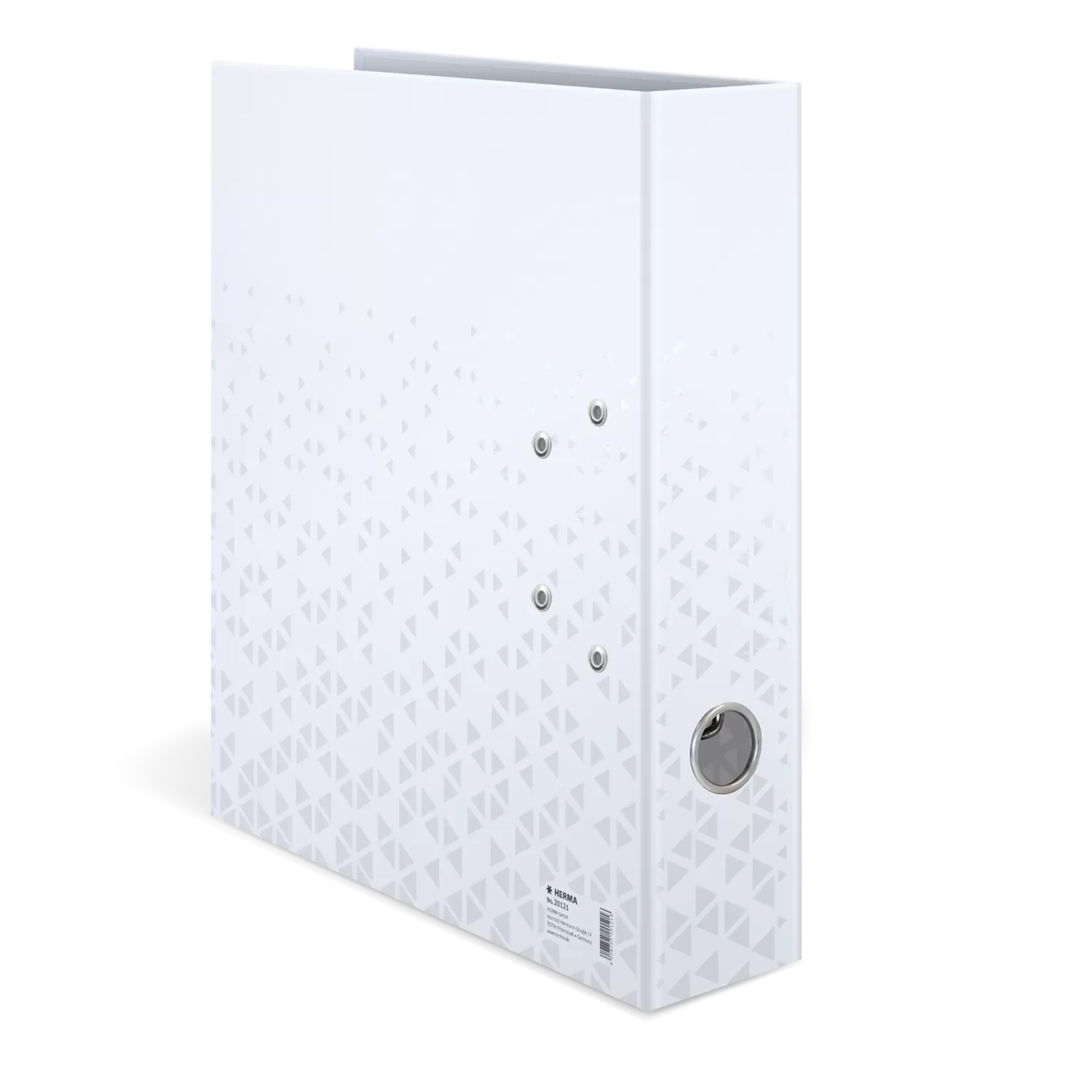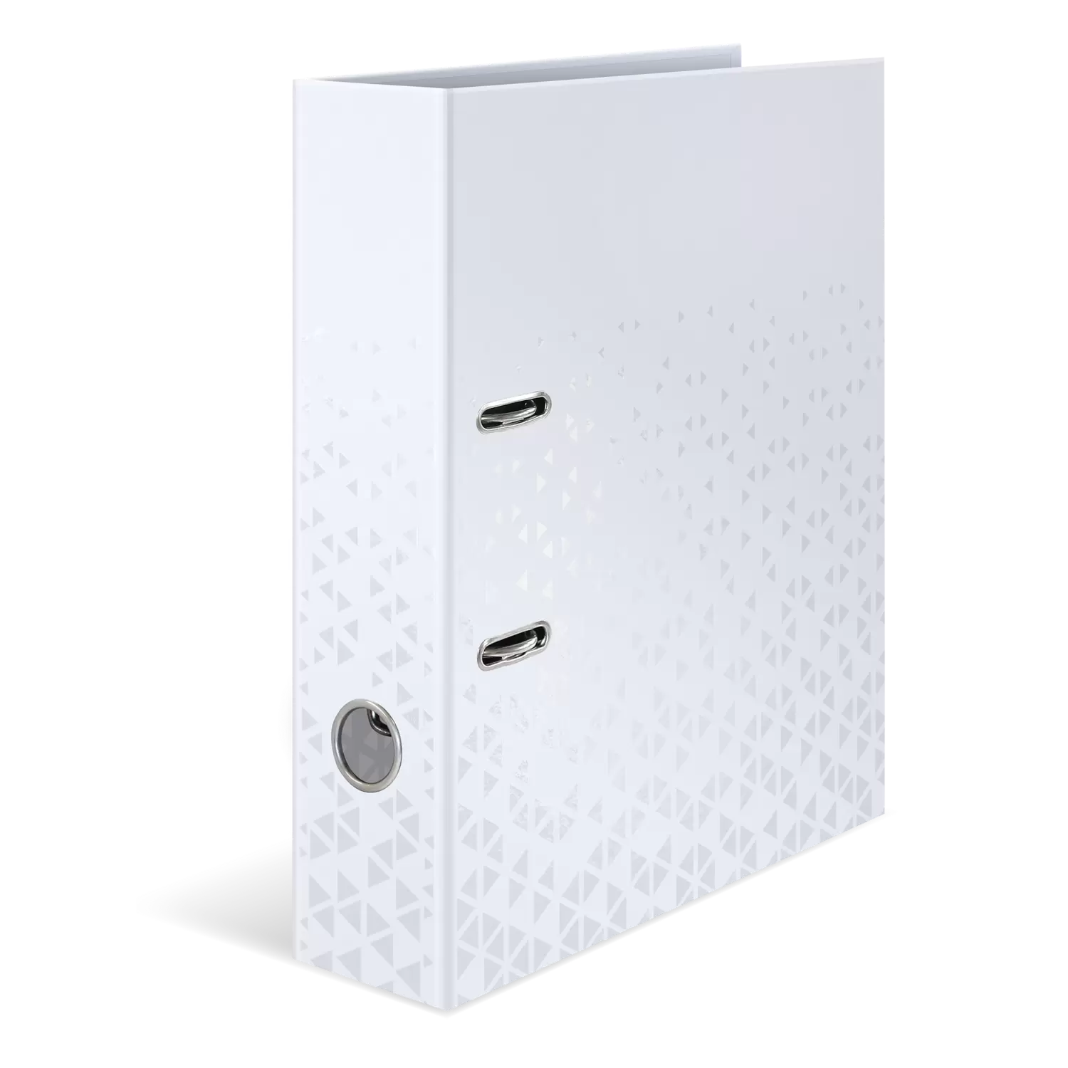 De nieuwe ordner "Color" in de kleur wit voor documenten in het formaat DIN A4 is een absolute must-have voor iedereen die waarde hecht aan stijl en organisatie. Deze ordner is niet alleen functioneel, maar ook een echte blikvanger. Bijzonder is het met lak afgewerkte oppervlak, dat een uniek softtouch-gevoel geeft. Een groot aantal kleine driehoekige patronen is voorzien van hoogwaardige lak, wat de ordner een stijlvolle en moderne look verleent. Naast het uiterlijke aspect overtuigt de ordner ook door zijn praktische eigenschappen. Hij biedt voldoende plek voor documenten in DIN A4-formaat en zorgt ervoor dat deze veilig en geordend kunnen worden bewaard. Dankzij het zeer stevige materiaal heeft de ordner een lange levensduur en kan tegen een stootje.