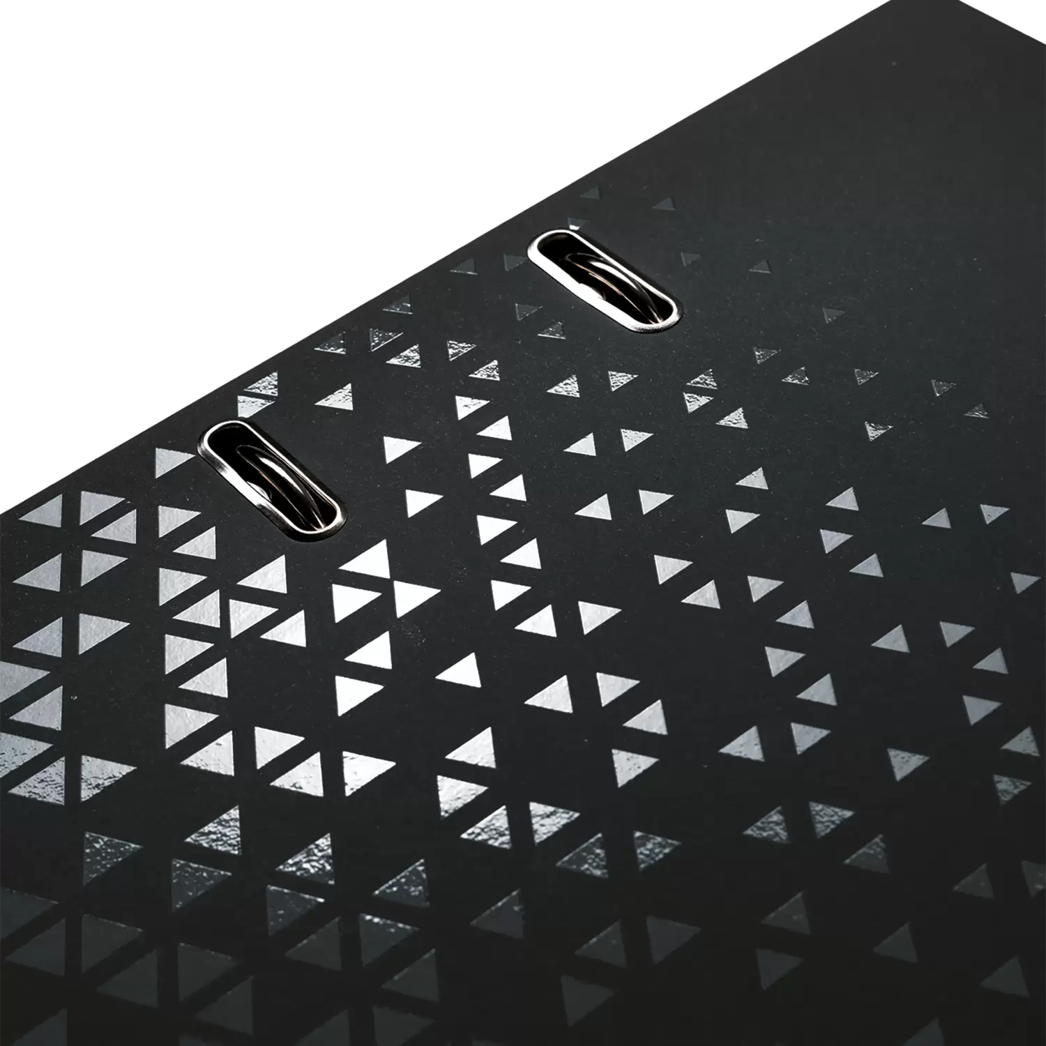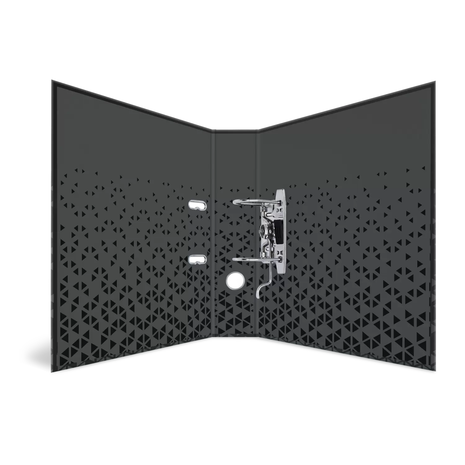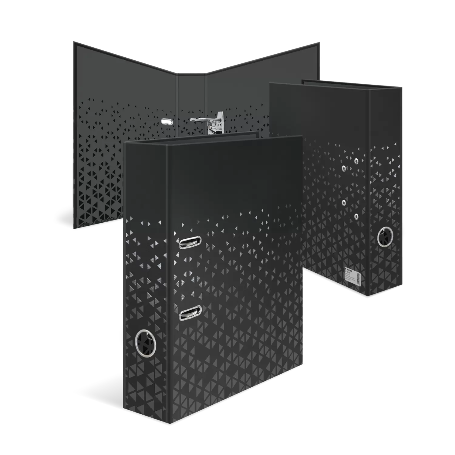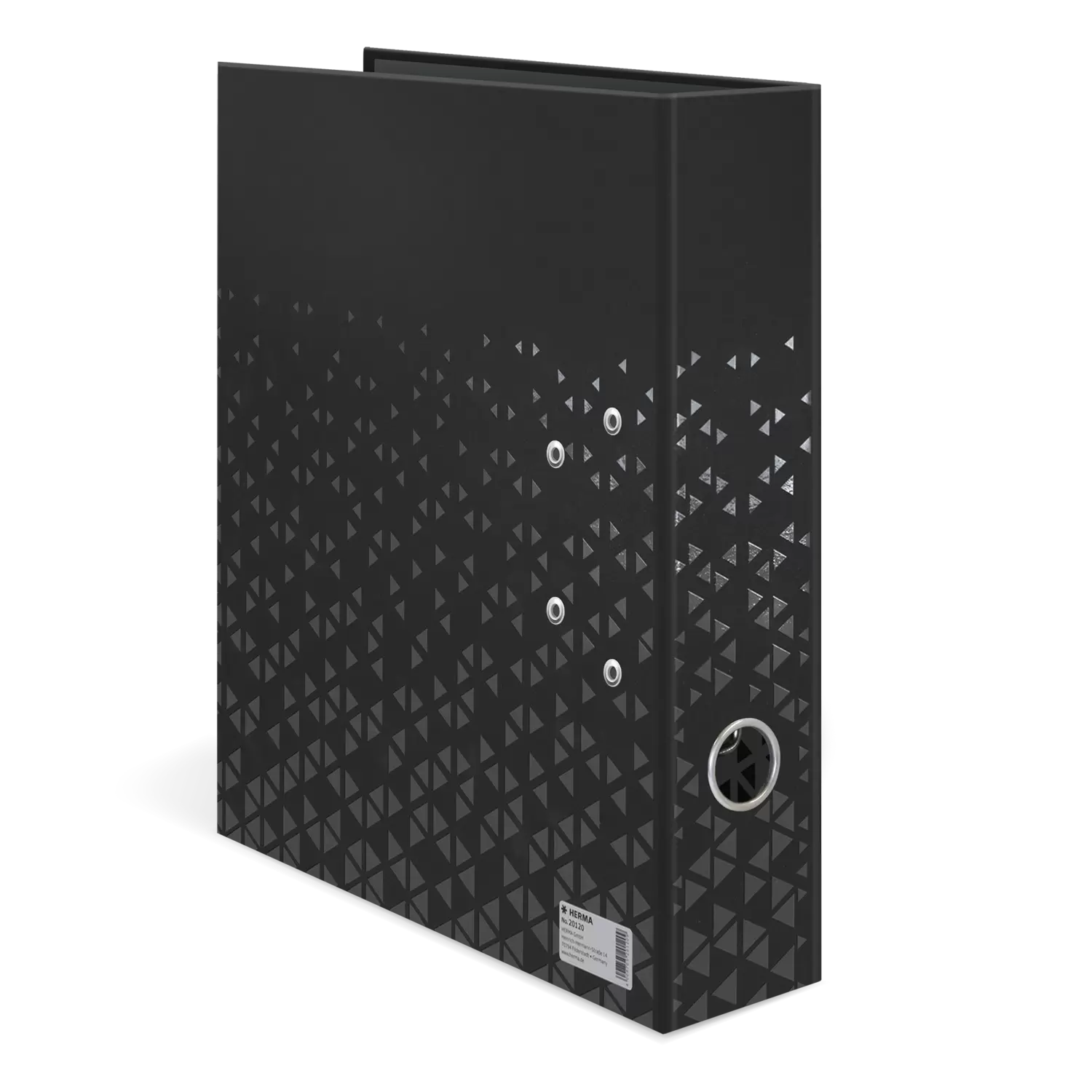 De nieuwe ordner "Color" in de kleur zwart voor documenten in het formaat DIN A4 is een absolute must-have voor iedereen die waarde hecht aan stijl en organisatie. Deze ordner is niet alleen functioneel, maar ook een echte blikvanger. Bijzonder is het met lak afgewerkte oppervlak, dat een uniek softtouch-gevoel geeft. Een groot aantal kleine driehoekige patronen is voorzien van hoogwaardige lak, wat de ordner een stijlvolle en moderne look verleent. Naast het uiterlijke aspect overtuigt de ordner ook door zijn praktische eigenschappen. Hij biedt voldoende plek voor documenten in DIN A4-formaat en zorgt ervoor dat deze veilig en geordend kunnen worden bewaard. Dankzij het zeer stevige materiaal heeft de ordner een lange levensduur en kan tegen een stootje.