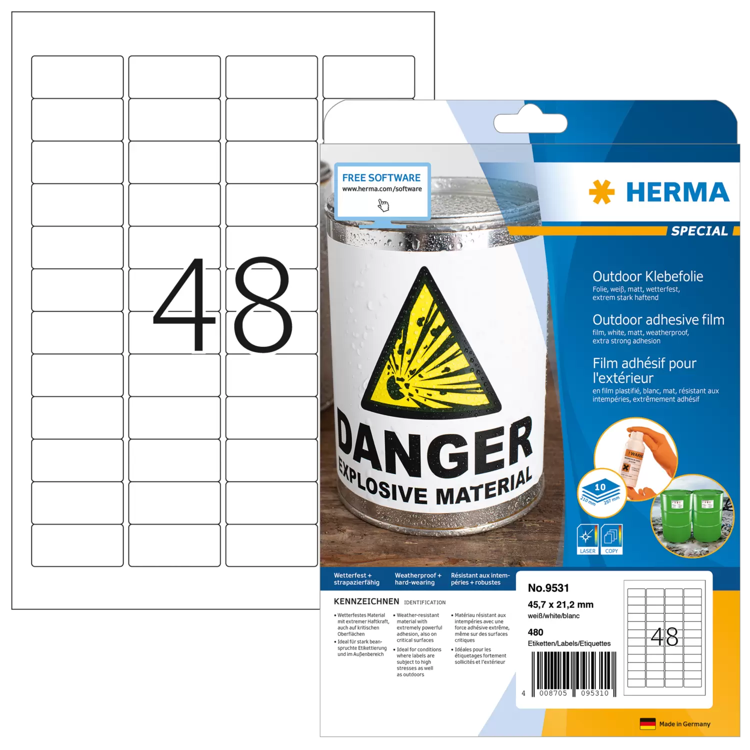 Weervaste outdoor-folie-etiketten, A4, 45,7 x 21,2 mm, wit, extreem sterk hechtend, elastisch