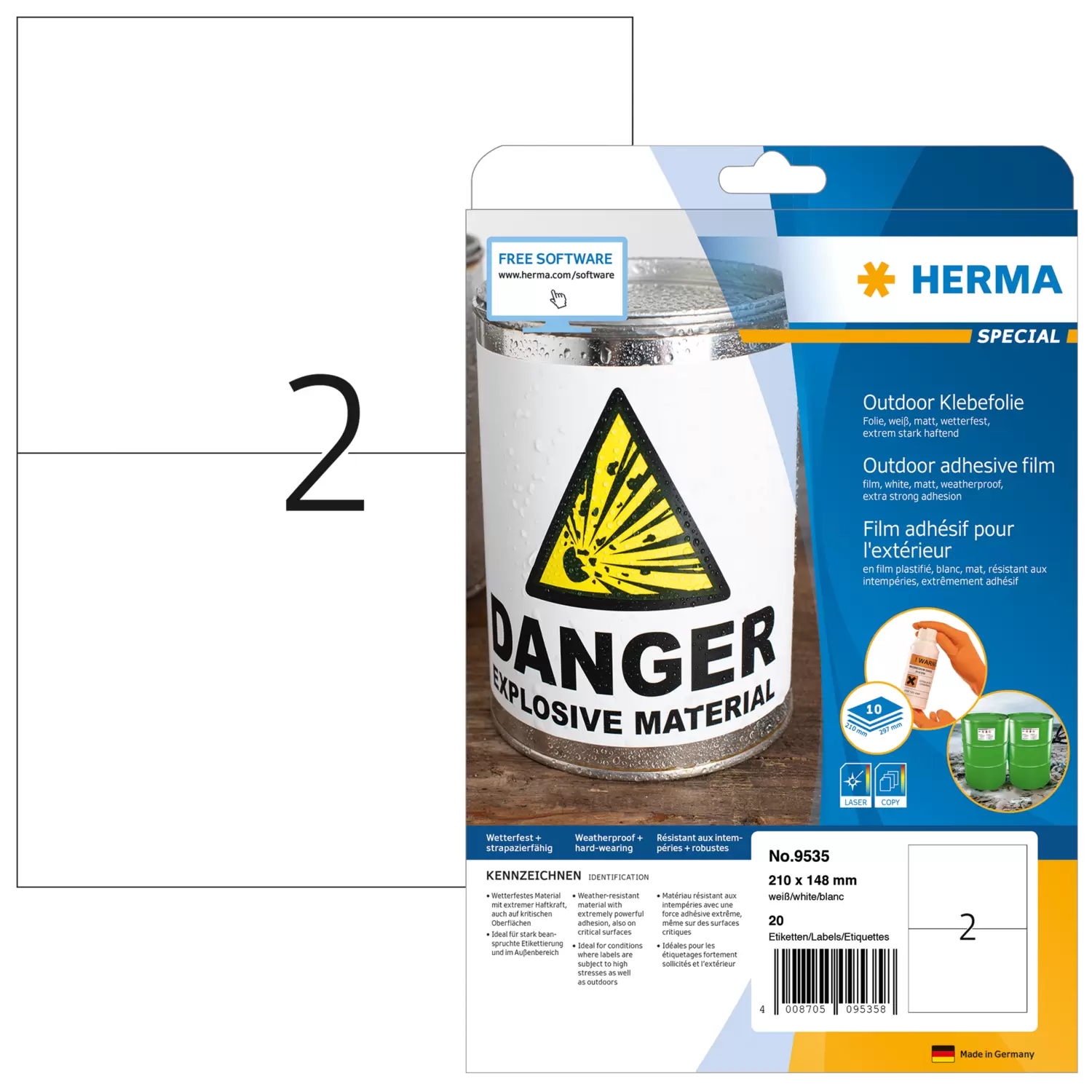 Weervaste outdoor-folie-etiketten, A4, 210 x 148 mm, wit, extreem sterk hechtend, elastisch