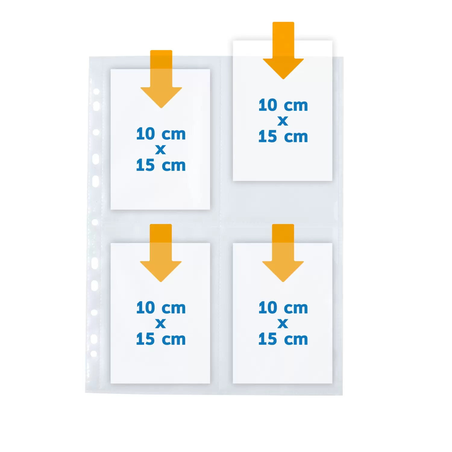 • Voor maximaal 4 ansichtkaarten per hoesje, beide zijden van de ansichtkaart blijven zichtbaar