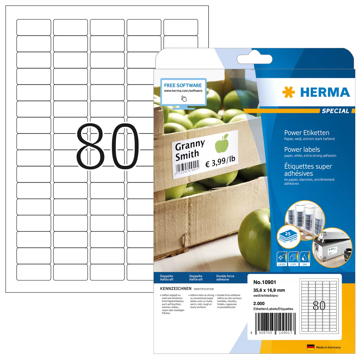 Power-etiketten, sterk hechtend, A4, 35,6 x 16,9 mm, wit, van papier