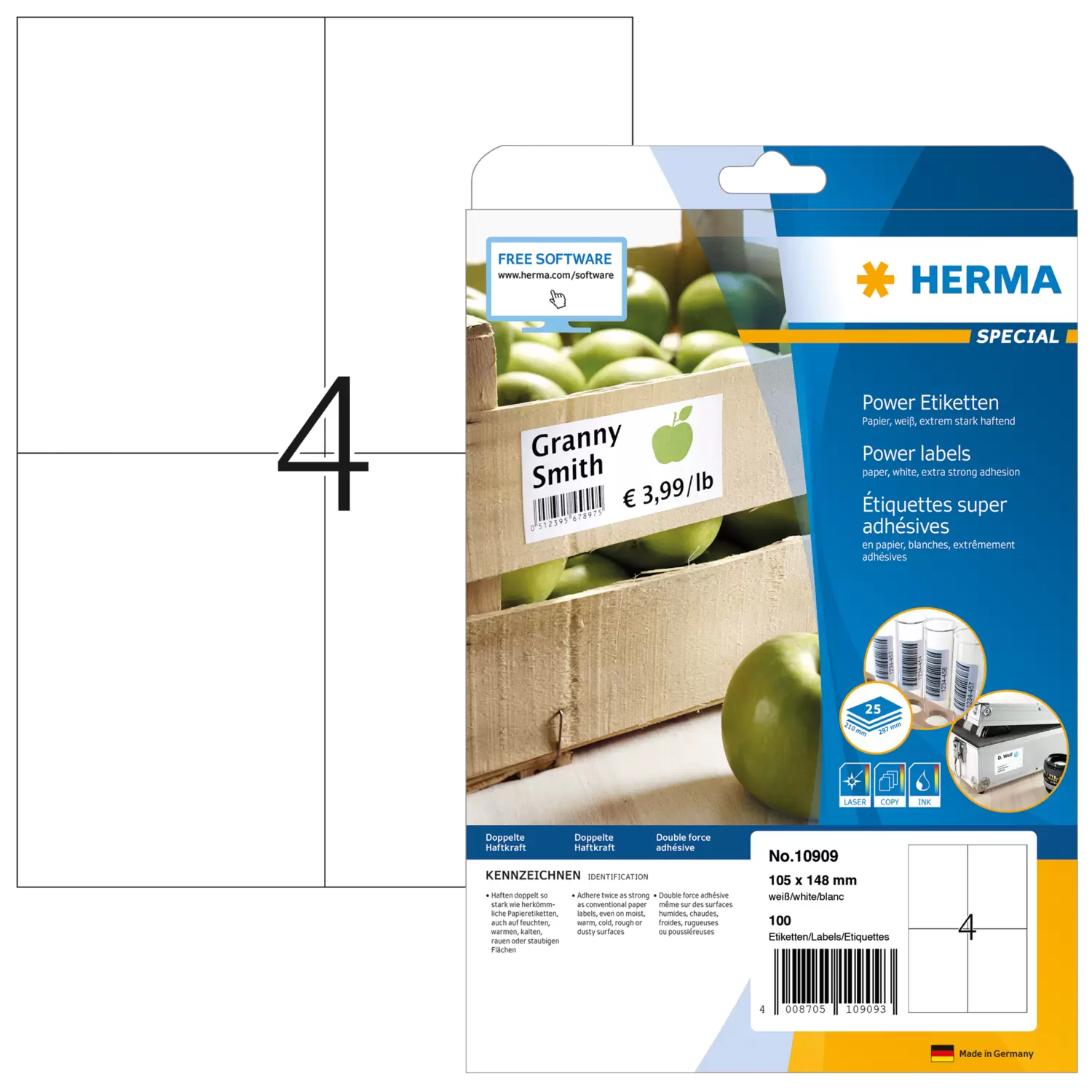 Power-etiketten, sterk hechtend, A4, 105 x 148 mm, wit, van papier