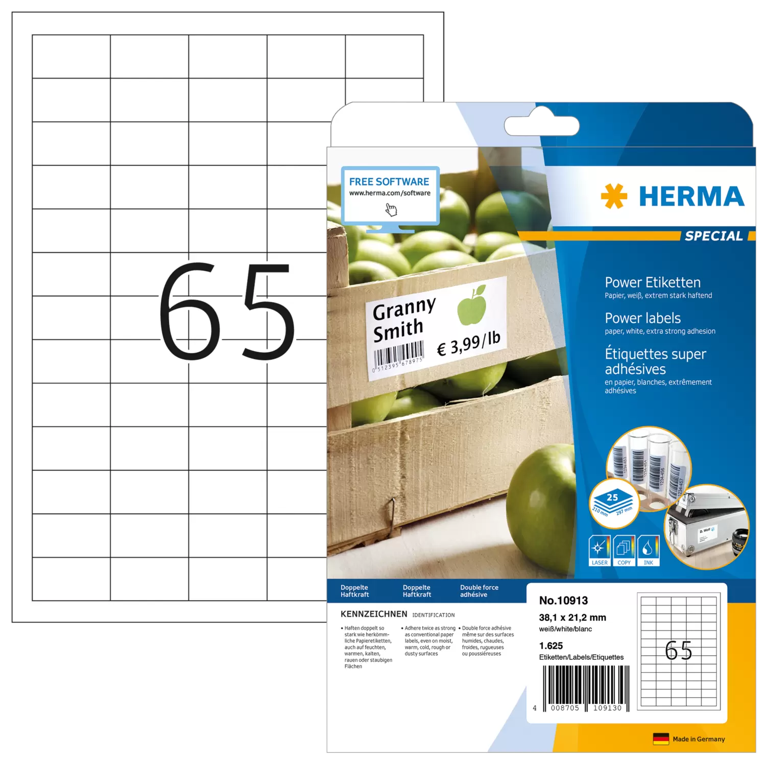 Power-etiketten, sterk hechtend, A4, 38,1 x 21,2 mm, wit, van papier