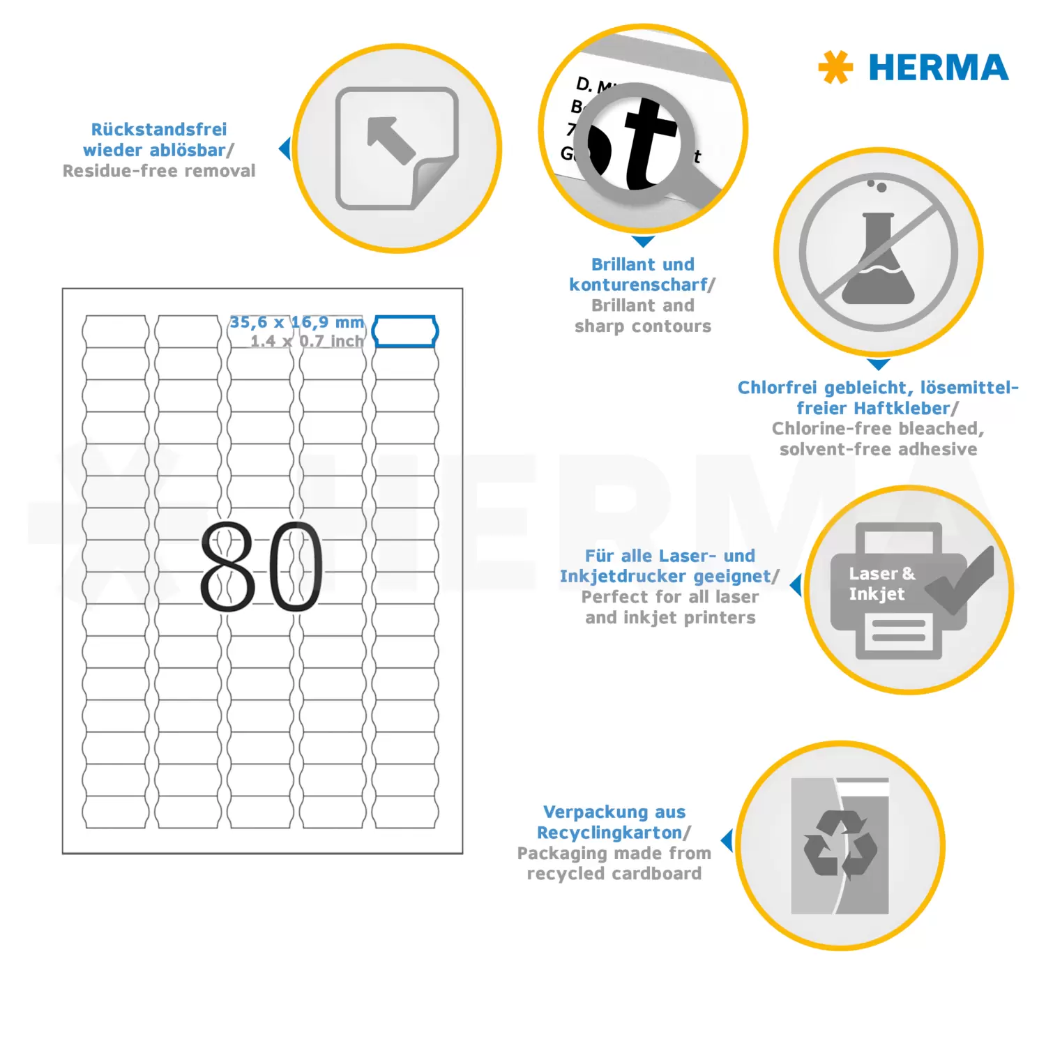 Verwijderbare etiketten zijn zowel geschikt voor inkjet- en laserprinters als voor kopieerapparaten. Met zeer goede afdrukresultatenin zwart en in kleur.