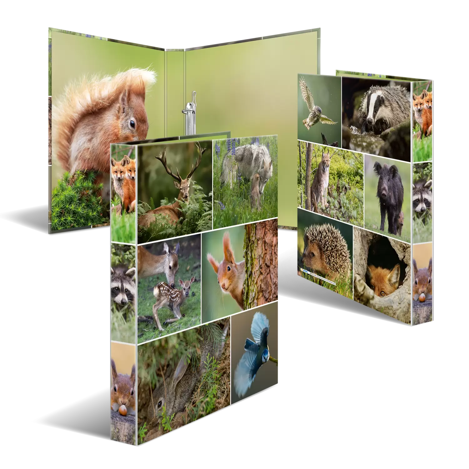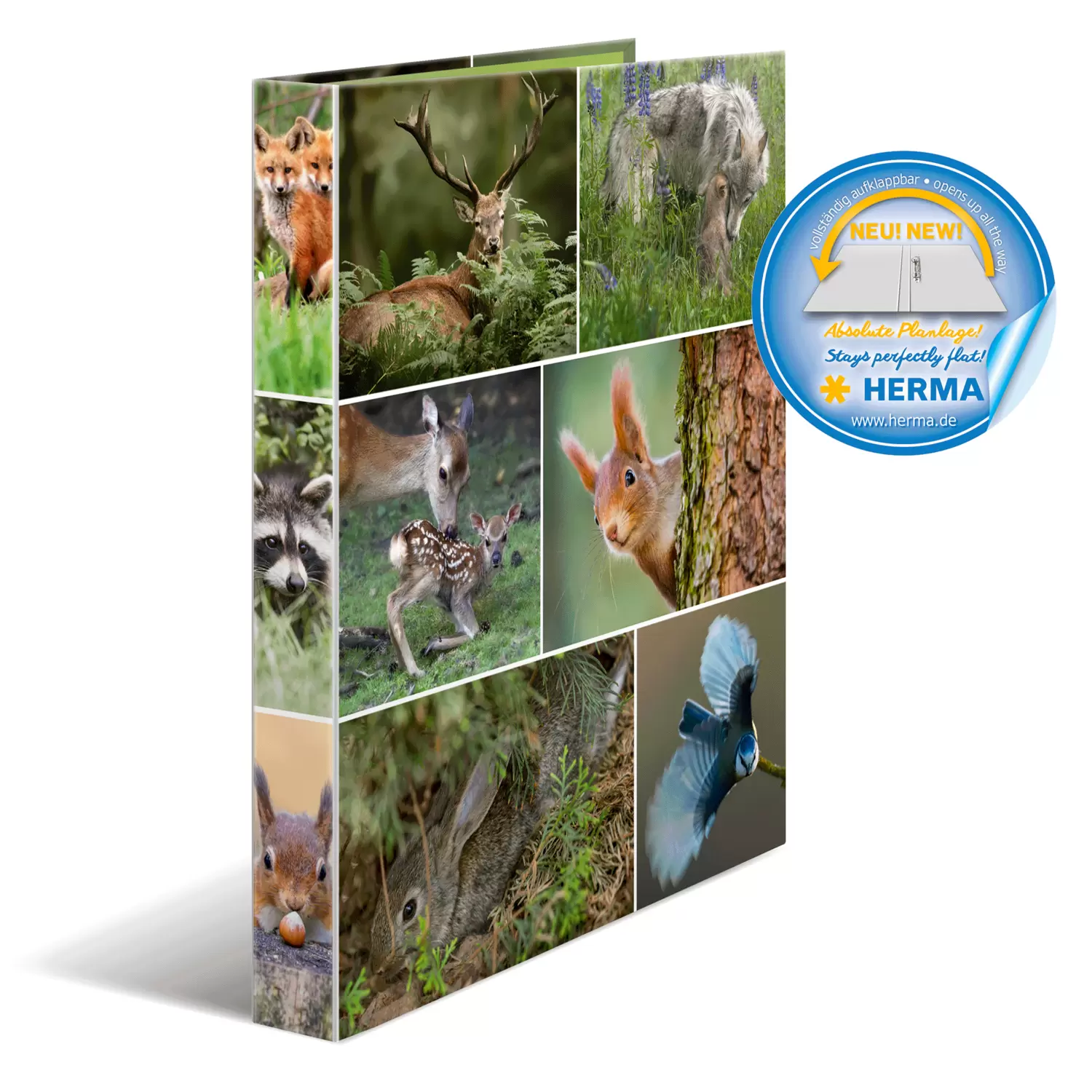 Orde moet er zijn – maar plezier ook! Wie vindt het nu echt leuk, zo'n papierbende? Precies, niemand. Maar op een gegeven moment moeten al die documenten, brieven, rekeningen en stukken nu eenmaal gesorteerd en opgeborgen worden. Met de HERMA ringmappen in praktisch formaat voor alle soorten papieren tot het formaat DIN A4 kunnen alle papieren netjes en overzichtelijk worden bewaard. Moet er een document worden opgetrommeld voor een instantie, een overheidsinstelling of de verzekering, dan is alles snel bij de hand. En ook voor de privé-genoegens zijn de mappen uitstekend geschikt: voor het verzamelen van recepten, voor de vakantieplanning of als gezinsplanner – hier vindt alles een plekje. En helemaal mooi: met de geweldige animal-designs is de mappenserie in de kast een echte blikvanger. Want orde is mooi, maar het oog wil tenslotte ook wat. Met het gloednieuwe ontwerp bosdieren haal je de schattige bosbewoners in huis. De ringmap is ontworpen met 16 prachtige dierenfoto's, van de partij zijn onder andere reeën, hazen, vossen en eekhoorntjes. Het praktische 2-rings mechaniek en de klem zorgen ervoor dat alles optimaal wordt vastgehouden.