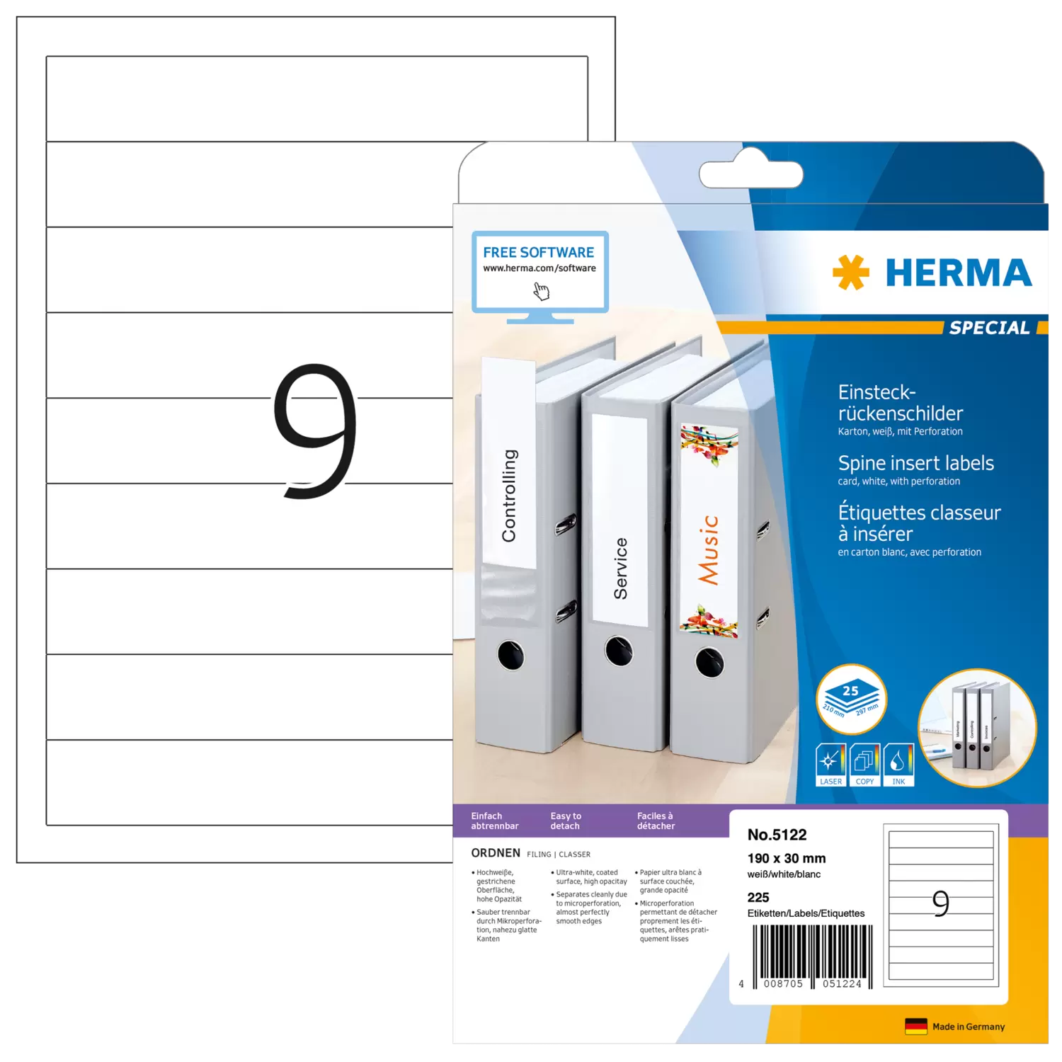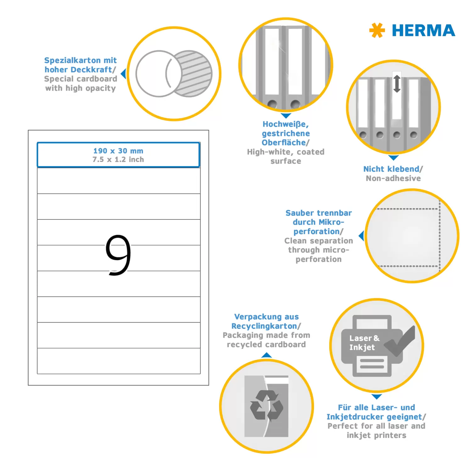 Insteek-ordnerrugplaatjes, A4, 190 x 30 mm, wit, van karton, niet klevend