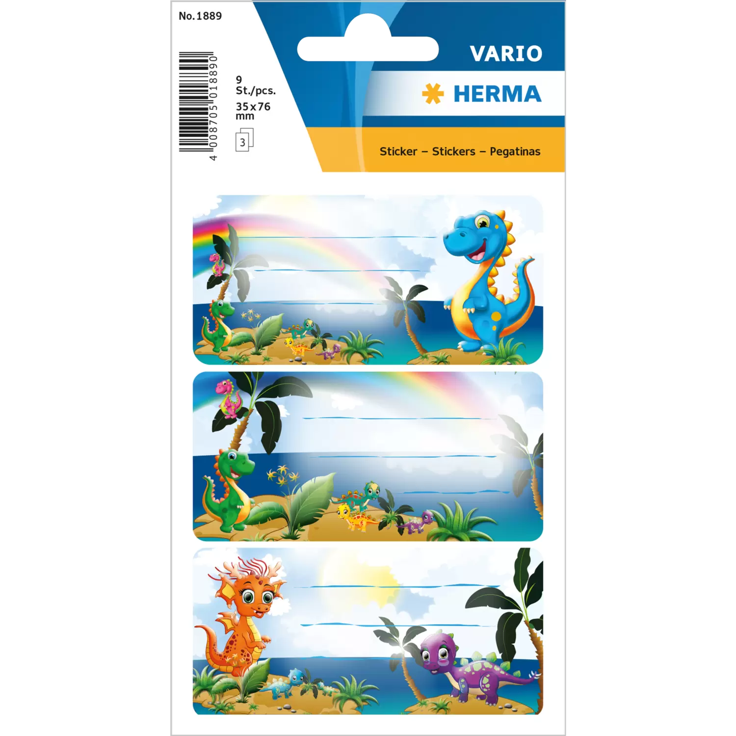Praktisch en kleurrijk, voor alle dino-fans: brutaal en nieuwsgierig kijken de kleine dino's je aan. Deze bontgekleurde schooletiketten in het formaat 76x35 combineren een leuk ontwerp met perfecte functionaliteit. Eenvoudig de zelfklevende papieren stickers snel en ongecompliceerd.met de hand beschrijven, van het rugpapier verwijderen, opplakken – klaar. Zodoende kan er op school, in de crèche en onder vrienden geen boek en schrift worden verwisseld.