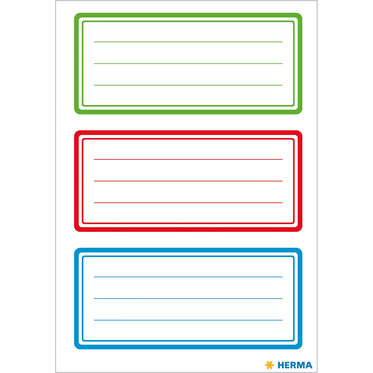 eenvoudige schooletiketten voor meisjes en jongens, 18 grote etiketten op drie vellen, gemaakt van hoogwaardig papier, bijzonder goed geschikt voor het beschrijven van schoolproducten, zoals schriften, kaften of boeken, in de kleuren groen, rood en blauw, geschikt voor school en kleuterschool of crèche, zelfklevend en bijzonder goed hechtend