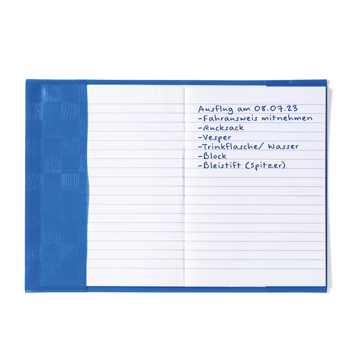 Schriftkaften van PP folie, met structuurpräging, solide verwerkt, met etiket.
