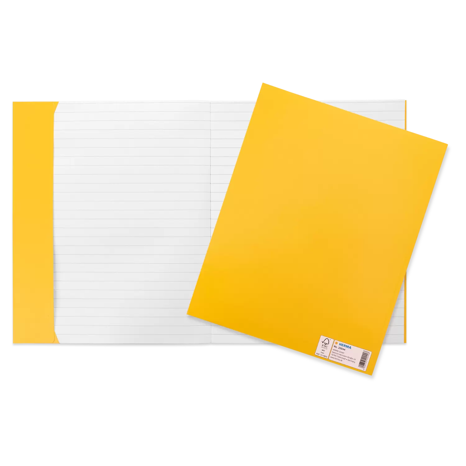 Deze gele schriftkaft van HERMA is geschikt voor alle Quart-schriften en -boekjes. De omslag biedt een optimale bescherming voor werkpaperassen, schoolschriften of cahiers. De dagelijkse paperassen en papieren voor school, universiteit of werk worden beschermd tegen gebruikssporen en je hoeft niet meer bang te zijn voor vouwen en ezelsoren. Omslagen van HERMA zijn helemaal zonder plastic gemaakt van stevig karton en daardoor robuust en resistent. Het stevige materiaal van extra sterk papier is van beproefde HERMA-kwaliteit en milieuvriendelijker dan traditionele kaften van plastic. De omslag voor schriften en boekjes is de optimale DIN Quart-hoes voor alle schriften en boekjes die niet meer blootgesteld mogen worden aan vocht en vuil, zodat de inhoud veilig beschermd is. Qua kleur is er voor elk wat wils en kan er uit kleuren worden gekozen. Op het etiket, dat goed zichtbaar aan de voorkant is aangebracht, kan informatie over de eigenaar, het vak of een verwijzing naar de inhoud worden geschreven. Zo blijven alle schriften en boekjes ordelijk en netjes.