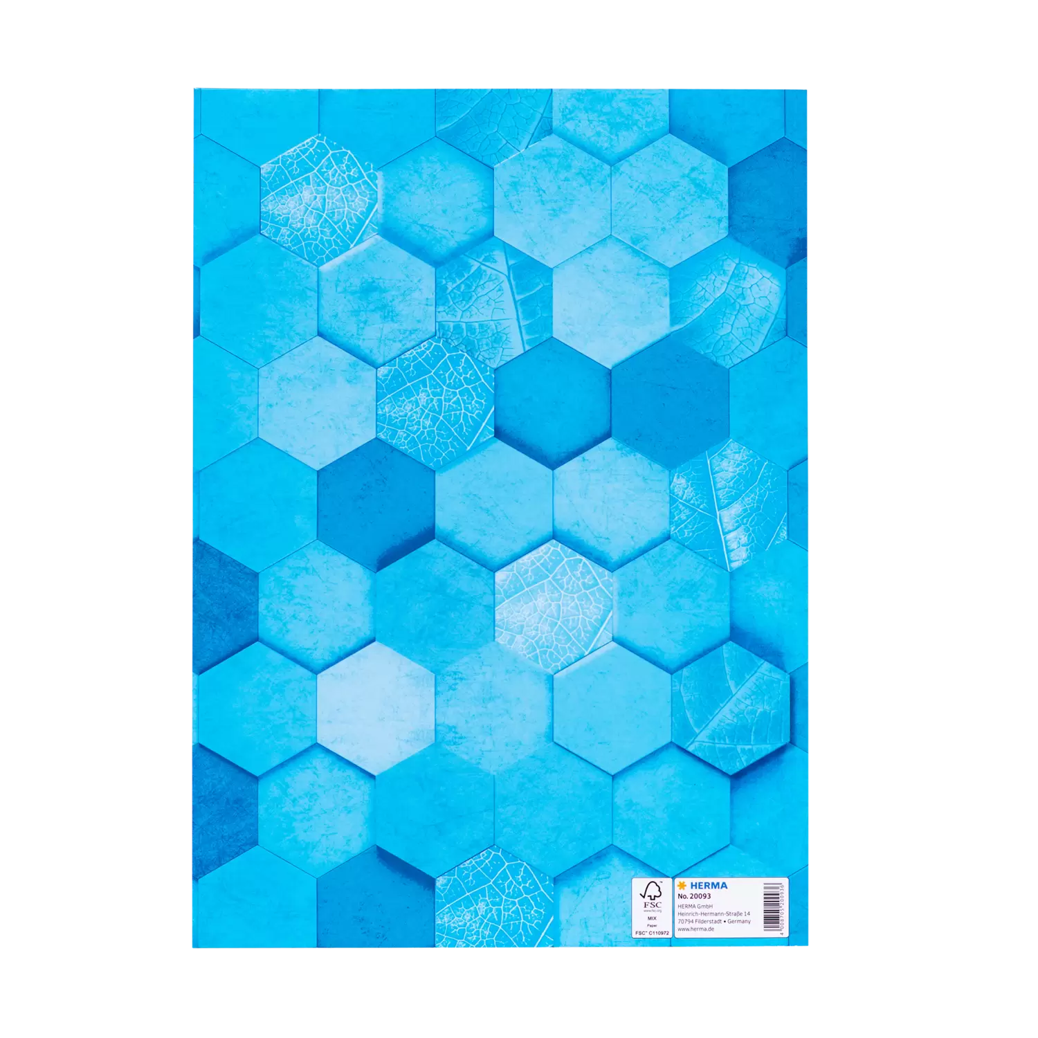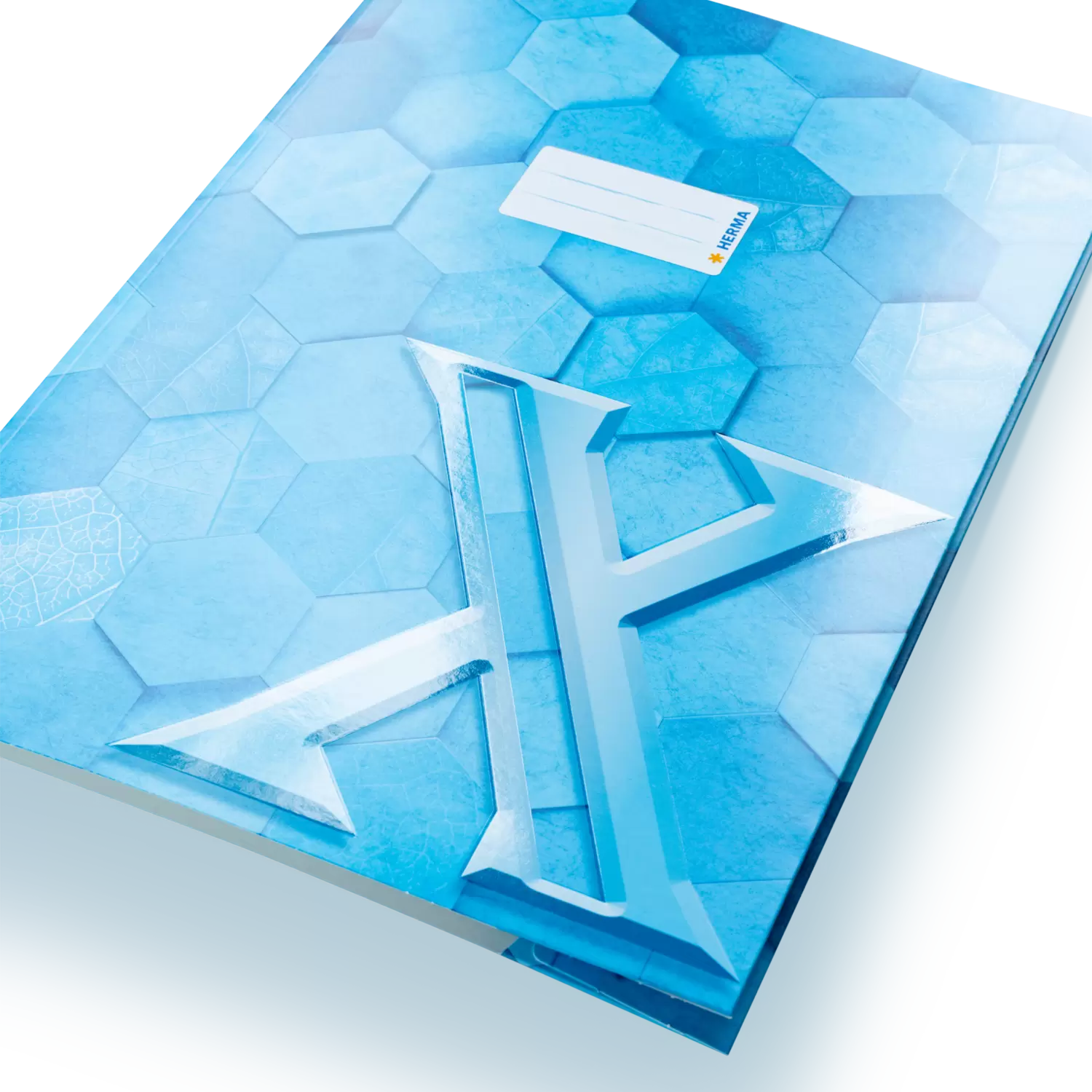 De HERMA kaft X van robuust karton is uniek en mysterieus. Staat de fraai gestileerde X aan de voorkant voor de variabele in de wiskunde, als code voor een geheim, voor het creatieve element, of als onbekende voor de inhoud van het te beschermen schrift of boekje? De kaft van de serie X is niet alleen maar een simpele beschermhoes, maar ook de toegang tot een wereld vol avonturen en geheimen, mystiek en divers. Deze lichtblauwe kaft X heeft het formaat DIN A4 en is versierd met kunstige hexagonen, die gevuld zijn met fijne bladstructuren en zo een fascinerende organische structuur creëren. De uitstraling van het coole design met de fraai gestileerde X ontketent je creativiteit en helpt je gedachten spelenderwijs op papier te zetten. Of het nu op school is, tijdens de studie of in de vrije tijd – deze kaft is de perfecte uitkomst voor iedereen die op zoek is naar iets bijzonders: De nieuwe serie X.