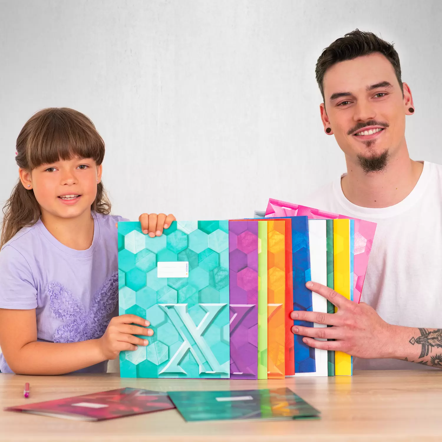 De HERMA kaft X van robuust karton is uniek en mysterieus. Staat de fraai gestileerde X aan de voorkant voor de variabele in de wiskunde, als code voor een geheim, voor het creatieve element, of als onbekende voor de inhoud van het te beschermen schrift of boekje? De kaft van de serie X is niet alleen maar een simpele beschermhoes, maar ook de toegang tot een wereld vol avonturen en geheimen, mystiek en divers. Deze oranje kaft X heeft het formaat DIN A4 en is versierd met kunstige hexagonen, die gevuld zijn met fijne bladstructuren en zo een fascinerende organische structuur creëren. De uitstraling van het coole design met de fraai gestileerde X ontketent je creativiteit en helpt je gedachten spelenderwijs op papier te zetten. Of het nu op school is, tijdens de studie of in de vrije tijd – deze kaft is de perfecte uitkomst voor iedereen die op zoek is naar iets bijzonders: De nieuwe serie X.
