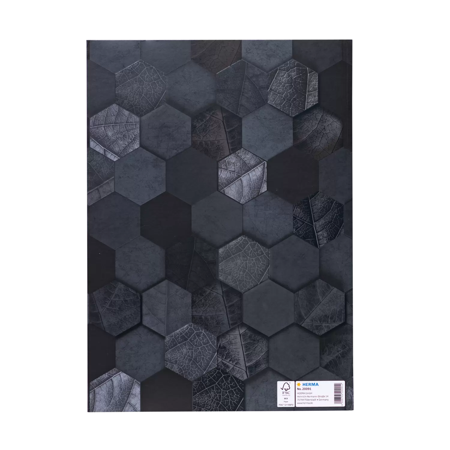 De HERMA kaft X van robuust karton is uniek en mysterieus. Staat de fraai gestileerde X aan de voorkant voor de variabele in de wiskunde, als code voor een geheim, voor het creatieve element, of als onbekende voor de inhoud van het te beschermen schrift of boekje? De kaft van de serie X is niet alleen maar een simpele beschermhoes, maar ook de toegang tot een wereld vol avonturen en geheimen, mystiek en divers. Deze zwarte kaft X heeft het formaat DIN A4 en is versierd met kunstige hexagonen, die gevuld zijn met fijne bladstructuren en zo een fascinerende organische structuur creëren. De uitstraling van het coole design met de fraai gestileerde X ontketent je creativiteit en helpt je gedachten spelenderwijs op papier te zetten. Of het nu op school is, tijdens de studie of in de vrije tijd – deze kaft is de perfecte uitkomst voor iedereen die op zoek is naar iets bijzonders: De nieuwe serie X.